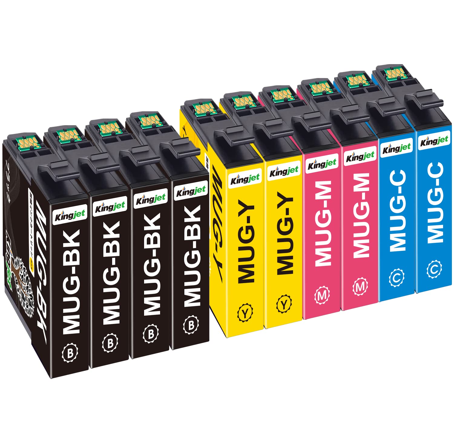KINGJET マグカップインク MUG-4CL エプソン(Epson)用 MUG EW-452A EW-052A 対応の互換インクカートリッジ 4色2パック MUG-BK ブラック4本(合計10本) 増量タイプ 残量表示機能 個包装