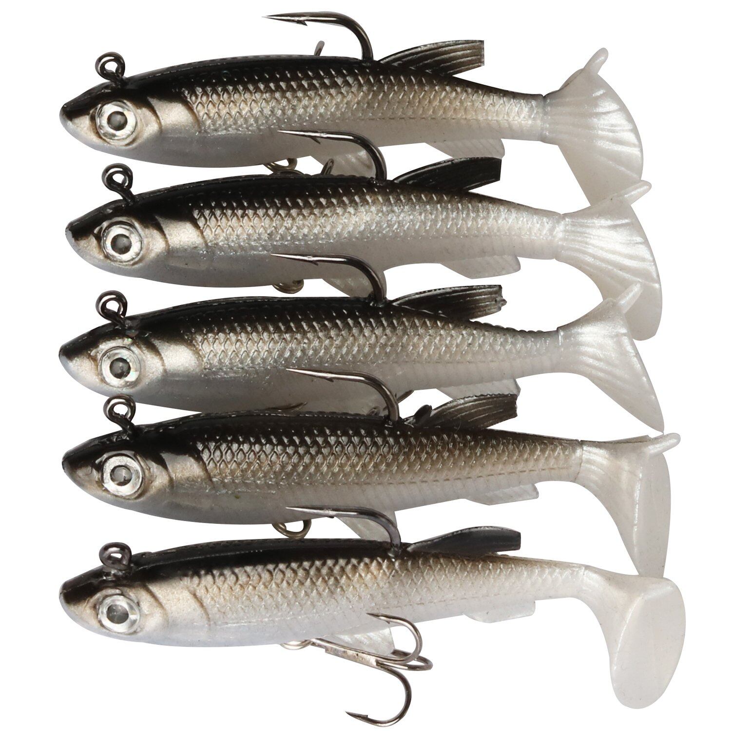 規格:◆ソフトラバー素材 ◆長さ85mm ◆自重:約13g/個*5本 ◆#6トリブルフックと#20シングルフック ◆タイプ:シンキング