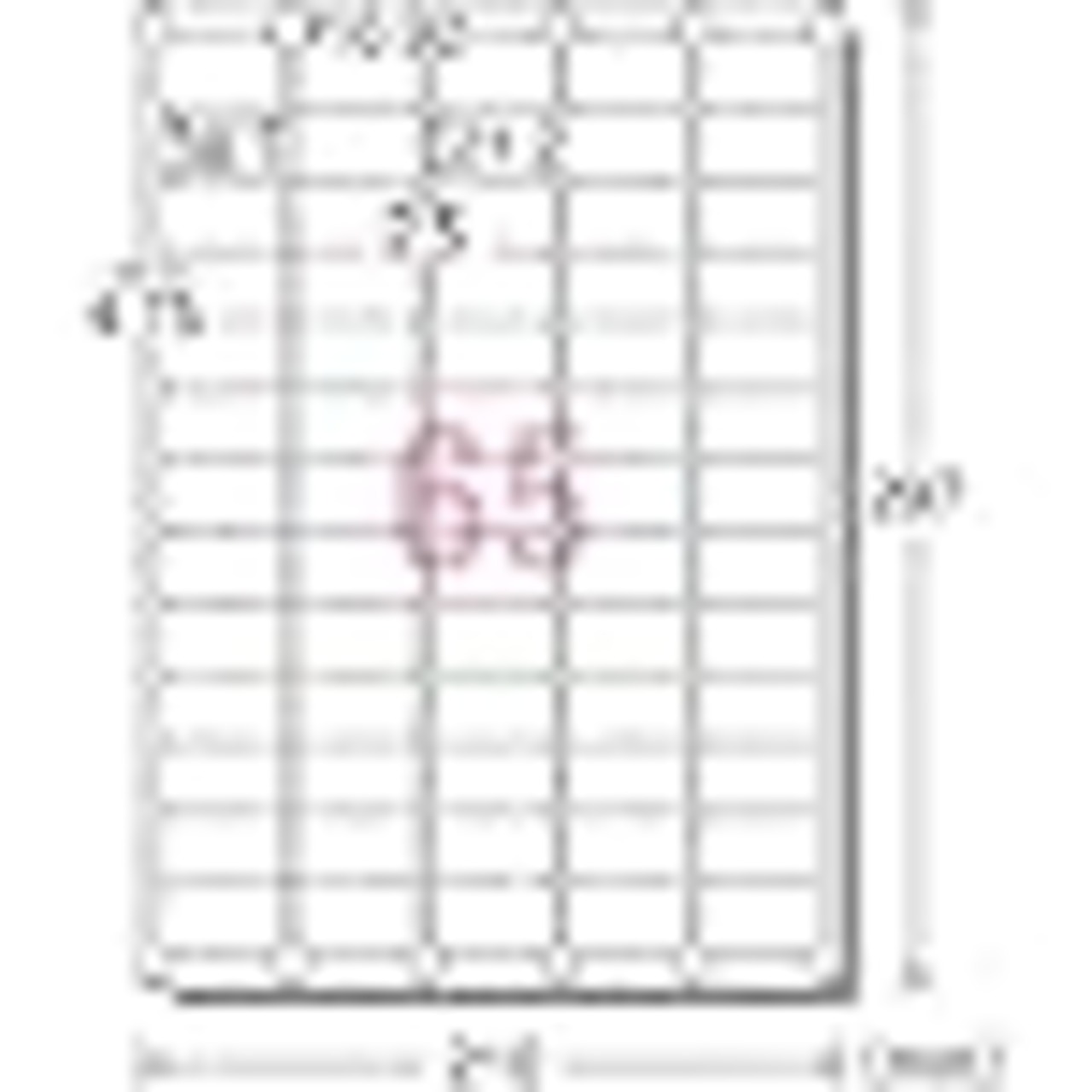 【製品情報】シートサイズ: A4判 (210mm×297mm) / 色: ホワイト / 質感: マット紙 / ラベルサイズ: 38.1×21.2mm (5列×13段) 65面 / 入り数: 10シート (650枚分) / ラベル厚み: 0.09mm