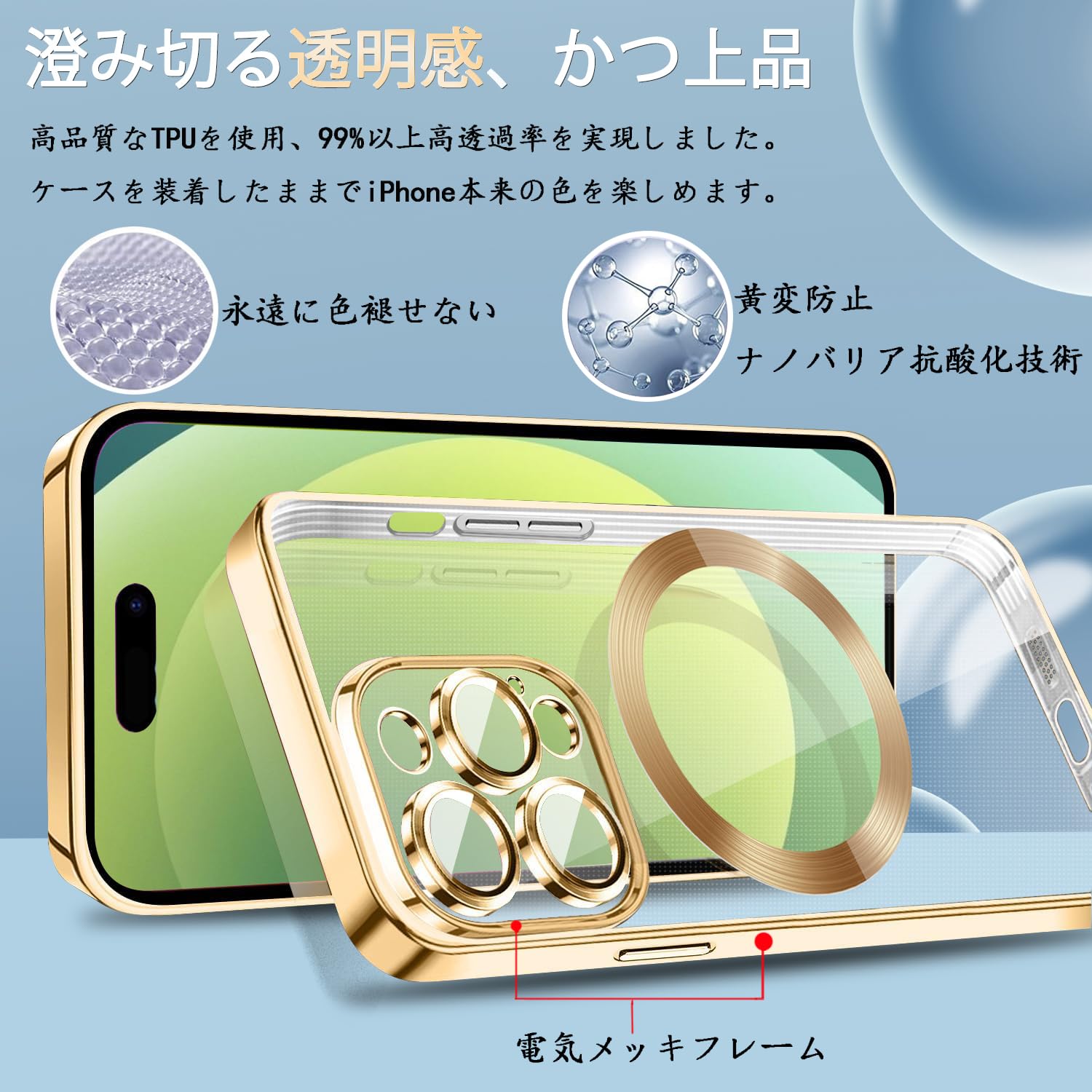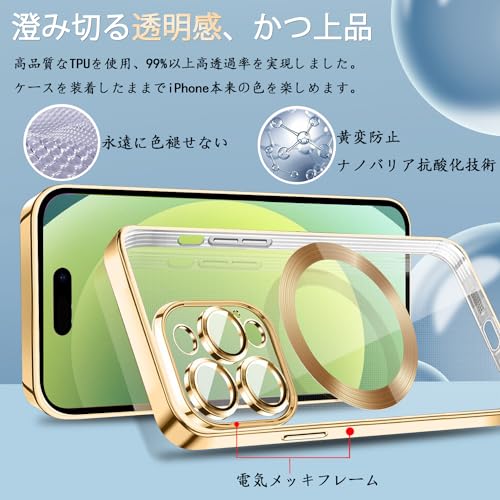 MuZiF iPhone 13 Pro 用 ケース クリア メッキ加工 Magsafe対応 永久磁石 レンズ保護 TPU ソフトケース 薄くて軽い 人気 耐衝撃 携帯カバー iPhone13 Pro 用 クリアケース (iPhone 13 Proきんいろ
