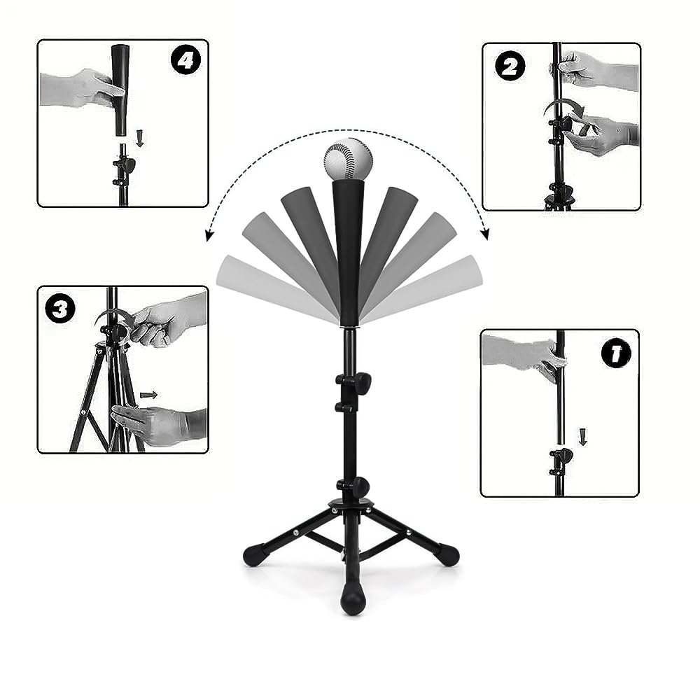 LKCCTK バッティングティー スタンド 野球 練習スタンド 置きティー スタンド ティー バッティングトレーニング 高さ 調整 野球打撃練習 折り畳み 持ち運び便利 硬式 軟式球 ソフトボール 兼用 スタンド収納袋付き (ブラック)