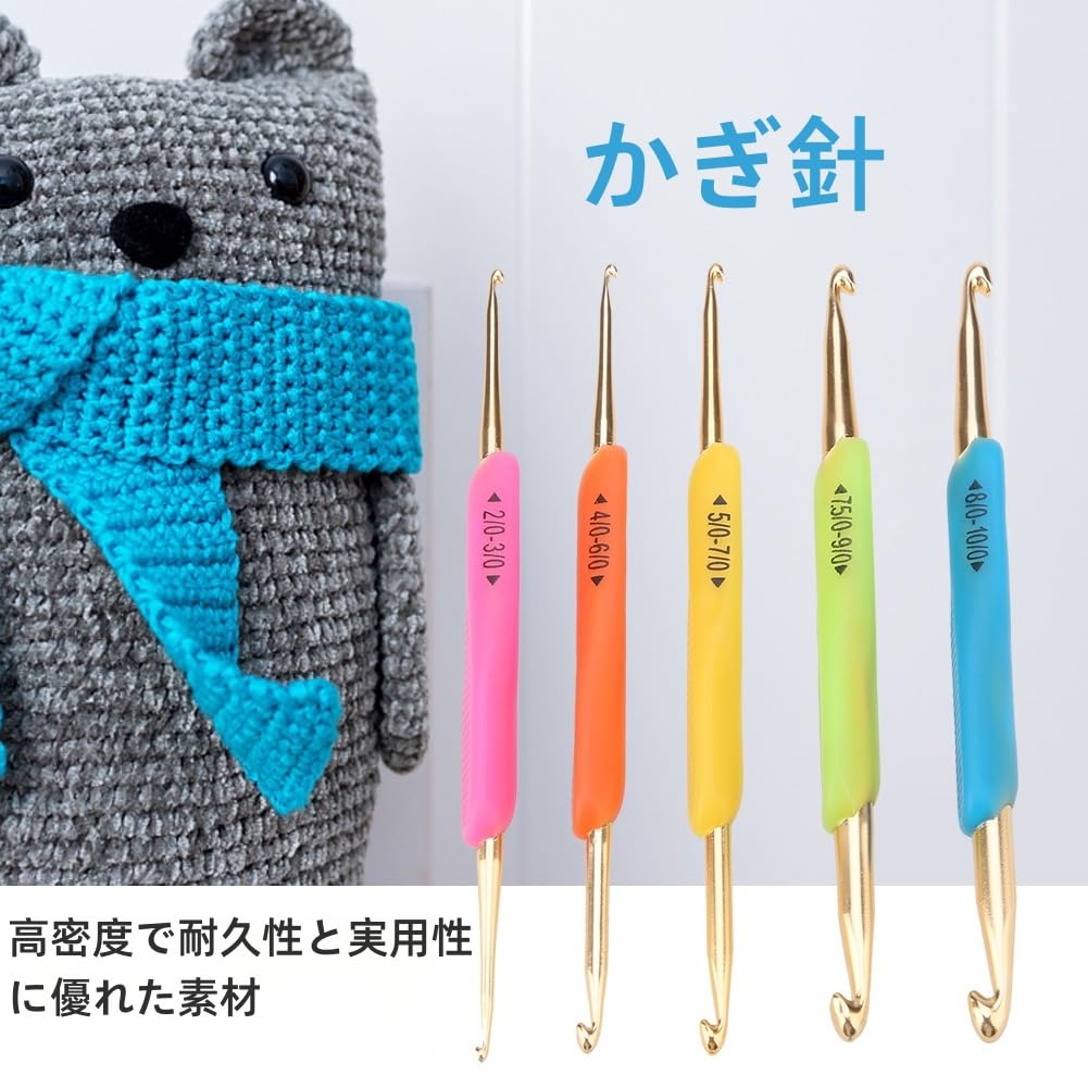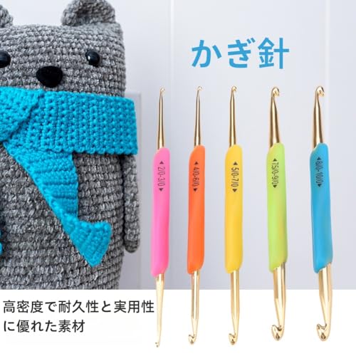 5本入り かぎ針セット アルミ 編み針セット ダブルフックハンドルかぎ針 アルミニウム 針ツール diyセーター 手芸 織りセーター 手編み 編み物 手芸 TPR 便利 実用的 ゴムのグリップ付き DIY用品