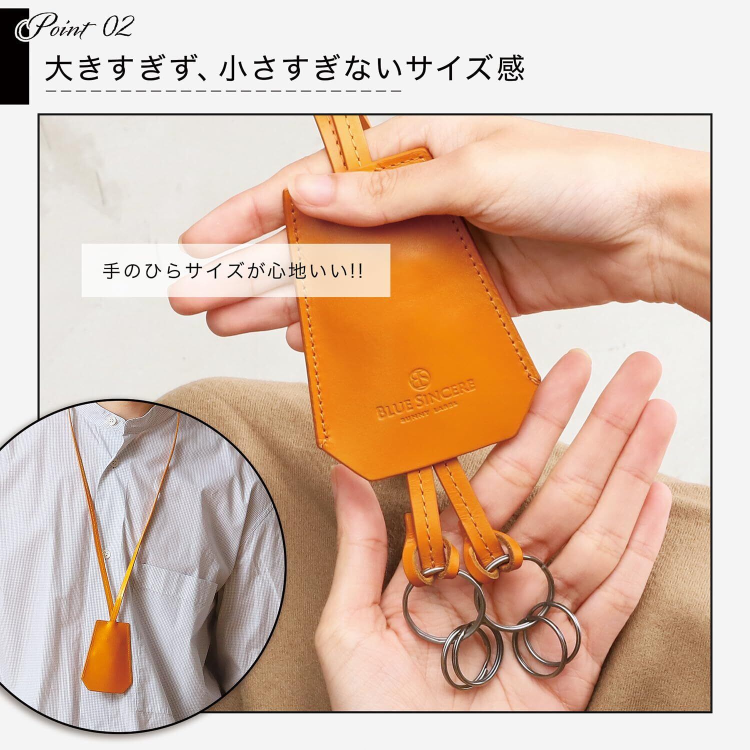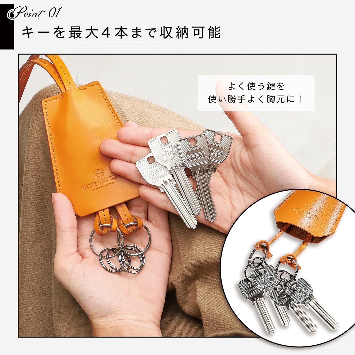 [BLUE SINCERE] クロシェット キーケース イタリアンレザー 本革 首掛け ネックレス アクセサリー キーホルダー メンズ レディース / ICS1 (ディープグリーン)