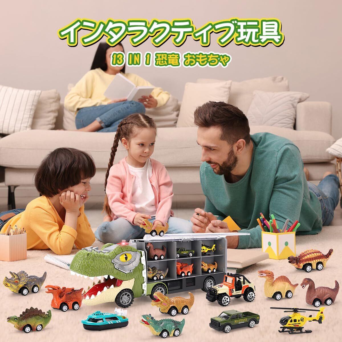 REMOKING 13 in 1 恐竜おもちゃ 車 おもちゃ 収納 カー ミニカーセット 知育玩具 ライト 音 恐竜フィギュア 2 3 4 5 6 7 8 歳 誕生日プレゼント 男の子 女の子