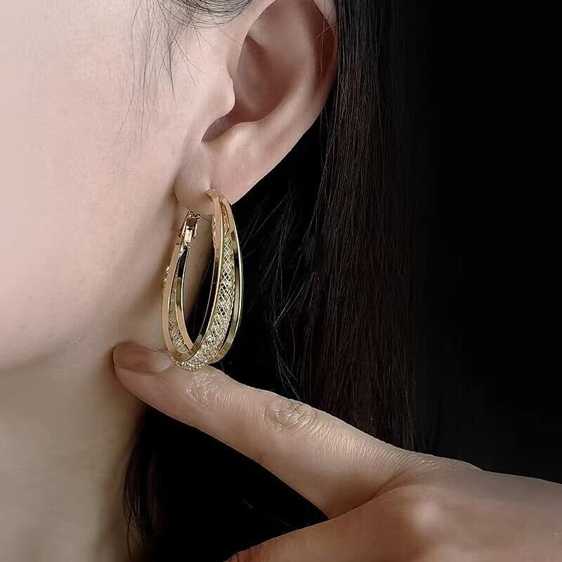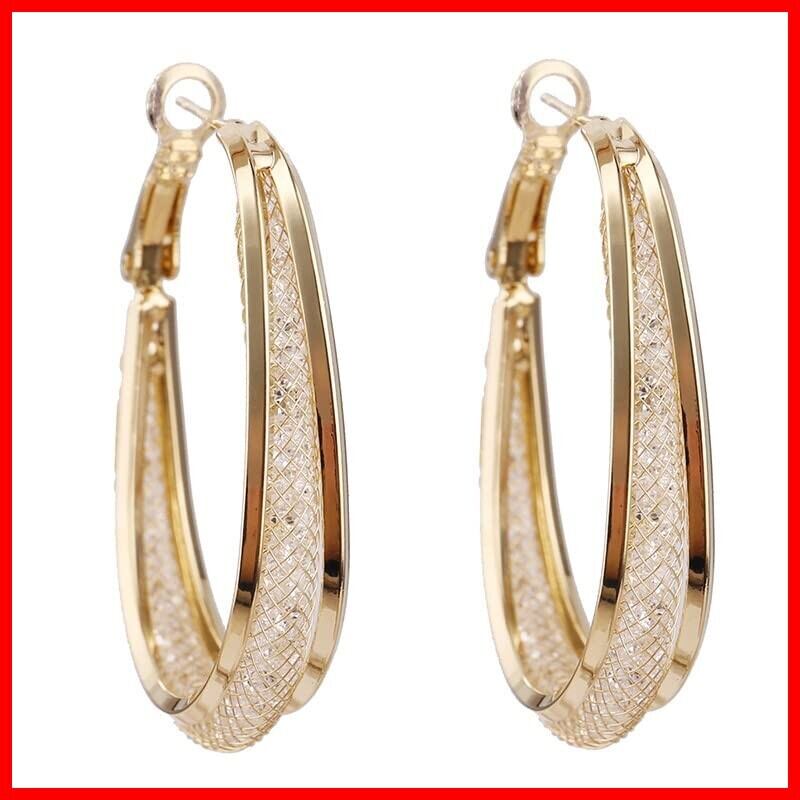 【きれいめ華やかデザイン】二重に広がるリングピアスの片方にジルコニアを敷き詰め、温かみのあるリング本体と、輝くジルコニアをミックス。サイズにもこだわって設計し、小ぶりなまま存在感があるサイズ設計