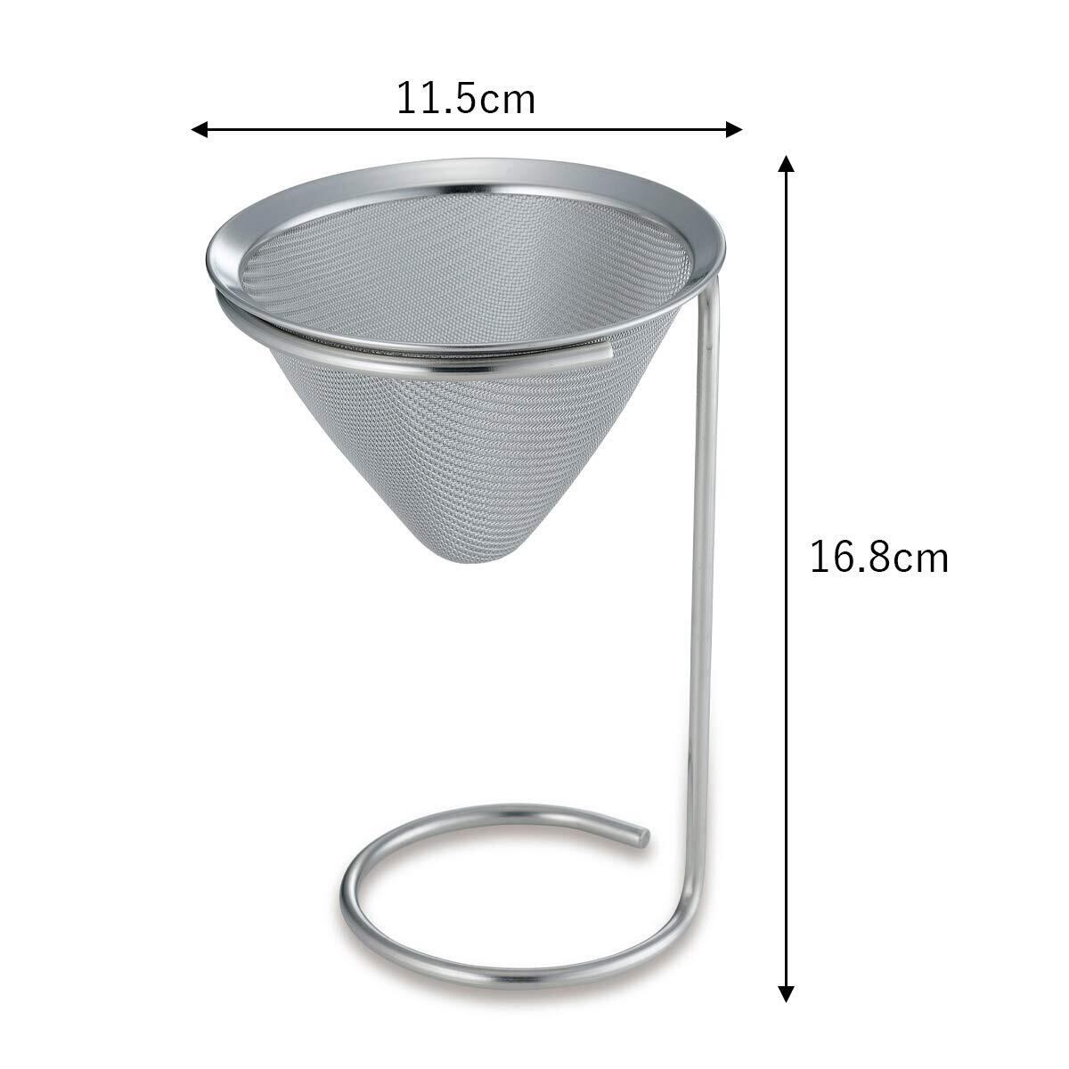 サイズ(約):幅11.5×奥行11.5×高さ16.8cm、スタンド外径(大)11.5×(小)8.6×高さ16.5cm、ストレーナー/外径11.4×高さ7.7cm(内径9.7×深さ7.5cm)、ストレーナーを小さい径にセット時の高さ19cm