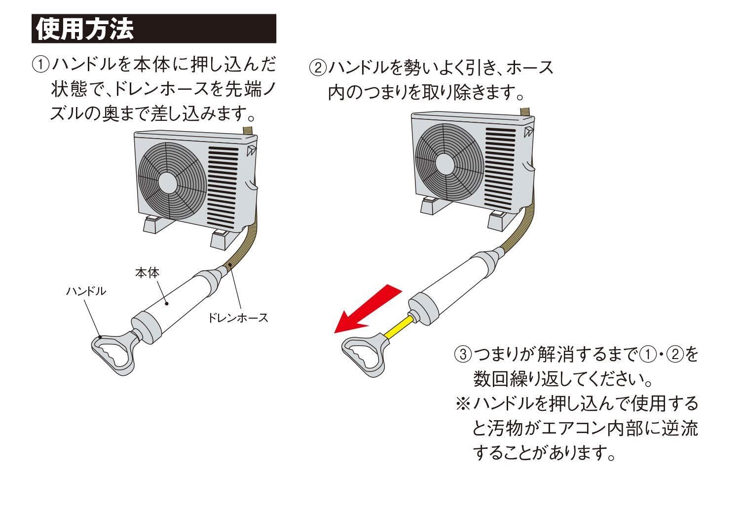 注意事項:ドレンホースに亀裂等がある場合は使用不可