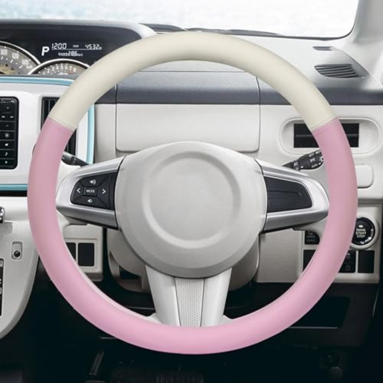 ZATOOTO ハンドルカバー バイカラー Sサイズ かわいい ステアリングカバー 軽自動車 おしゃれ ツートンカラー 普通車 適合多車種 タント ハスラー キャンバス ピンク LY172-P