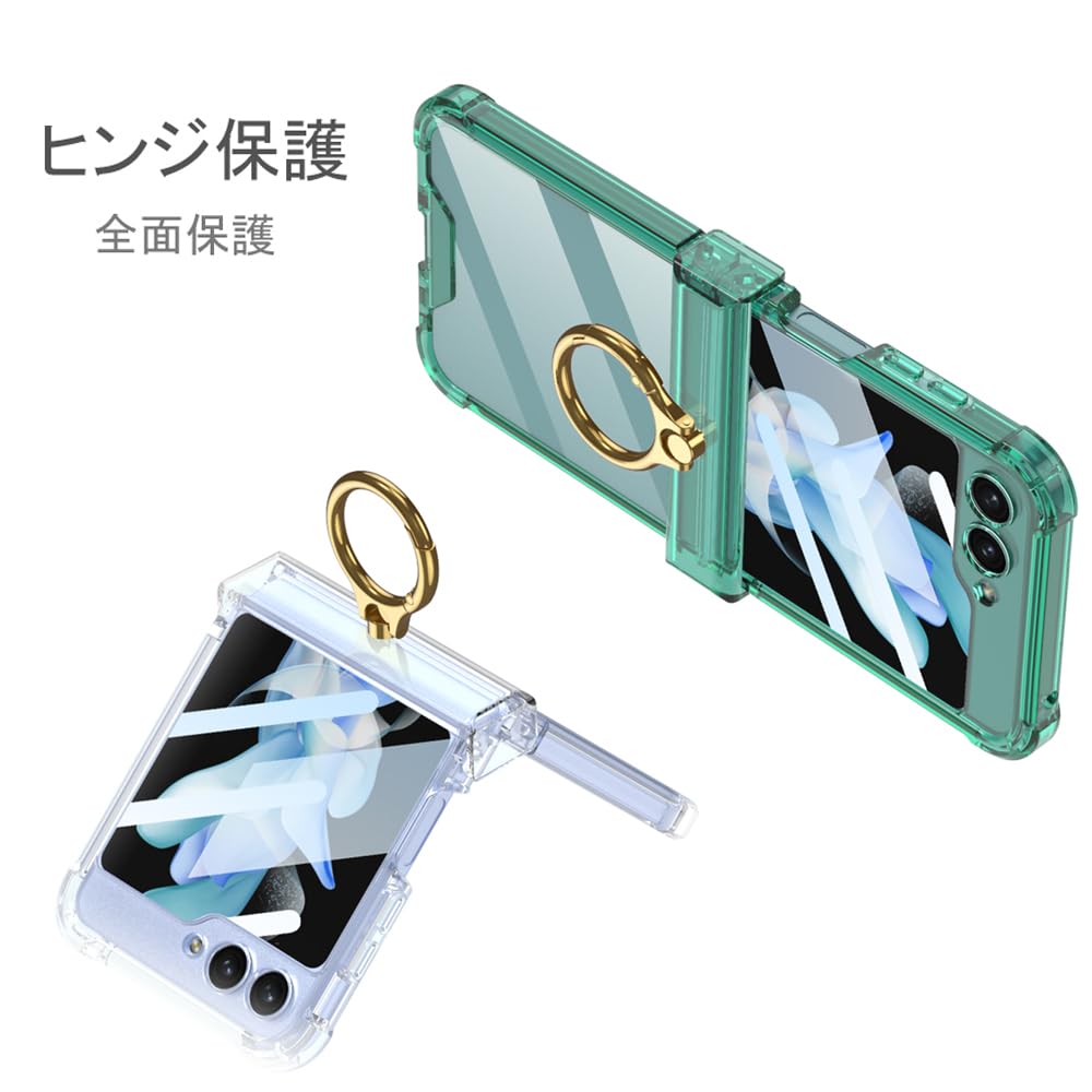 Galaxy Z Flip6 ケース クリア Samsung ギャラクシーzフリップ 6 / SC-54E 用 カバー リング付き ヒンジ保護 Uovon スマホケース 耐衝撃 スタンド機能 ストラップ穴付き 超軽量 超薄型 黄変防止 おしゃれ・クリア