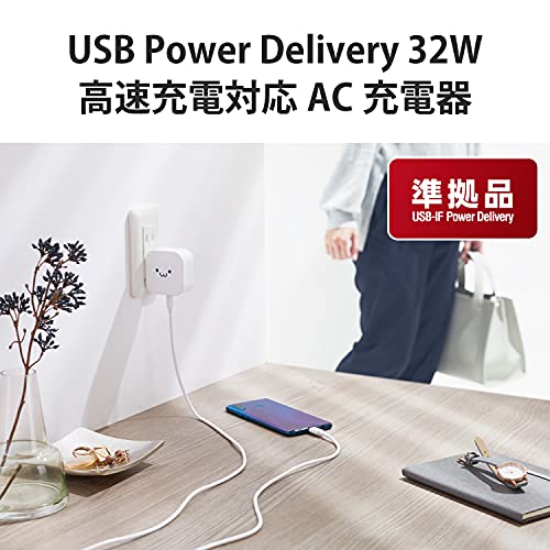 エレコム USB コンセント 充電器 合計32W ( USB PD対応 ) Type-C×1 / USB-A×1 ホワイトフェイス MPA-ACCP20WF