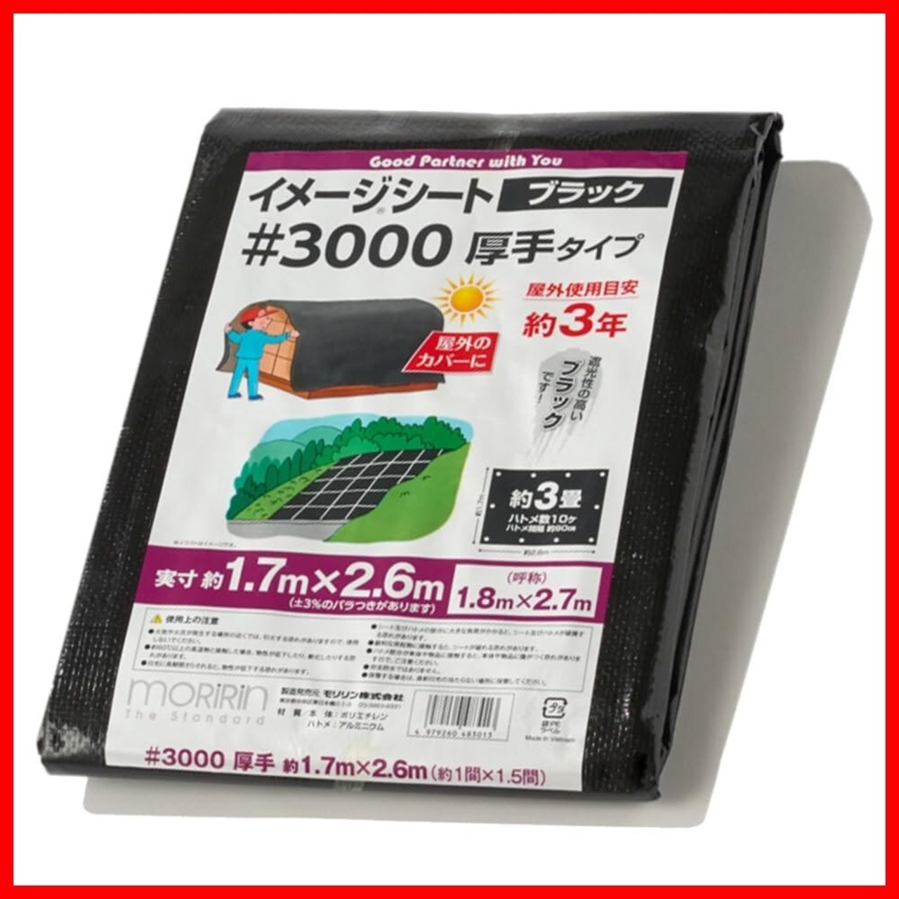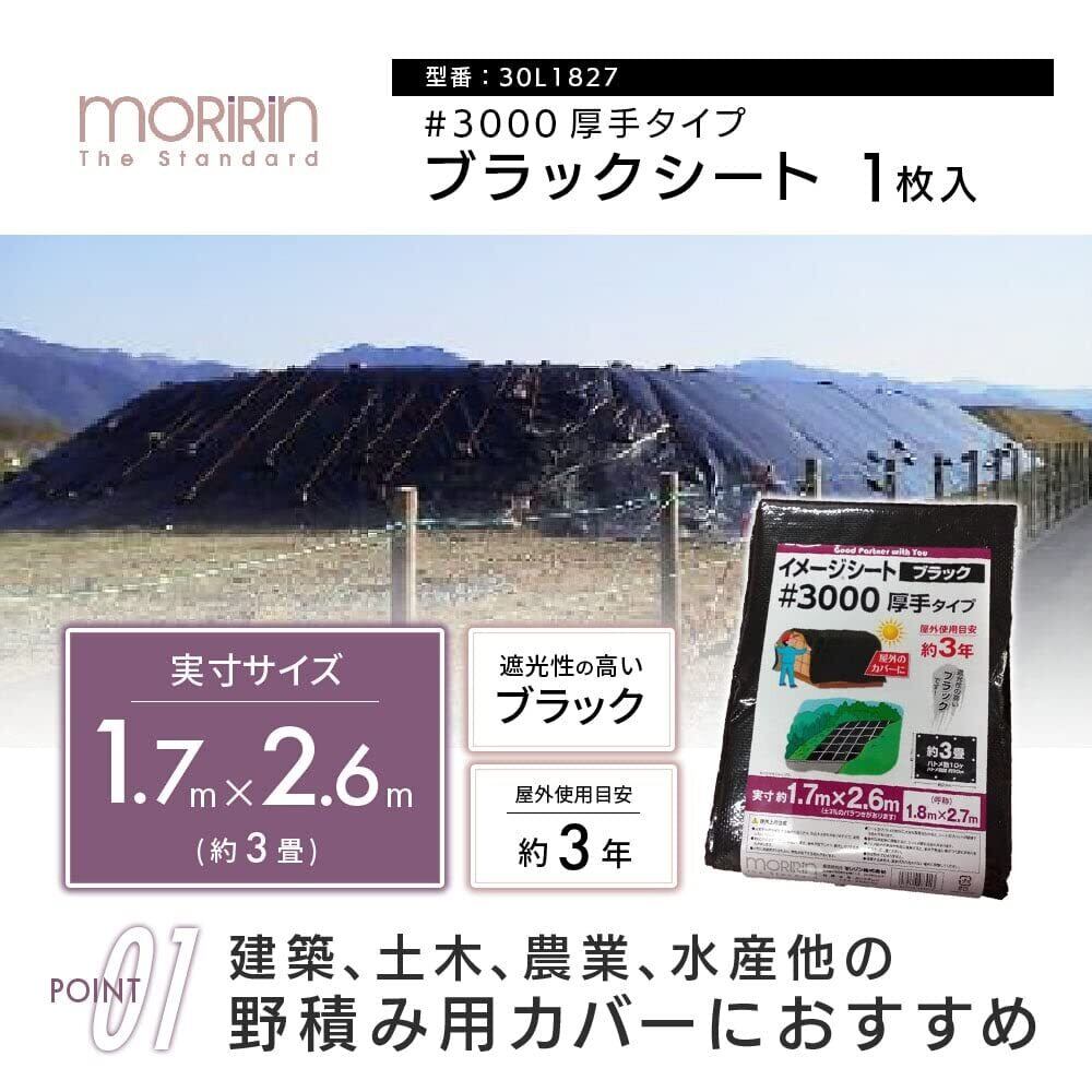 モリリン ブラックシート レジャーシート #3000 実寸約1.7m×2.6m 約3畳 厚手 屋外使用目安約3年 ハトメ数10 雨よけ 風よけ 野積み 30L1827