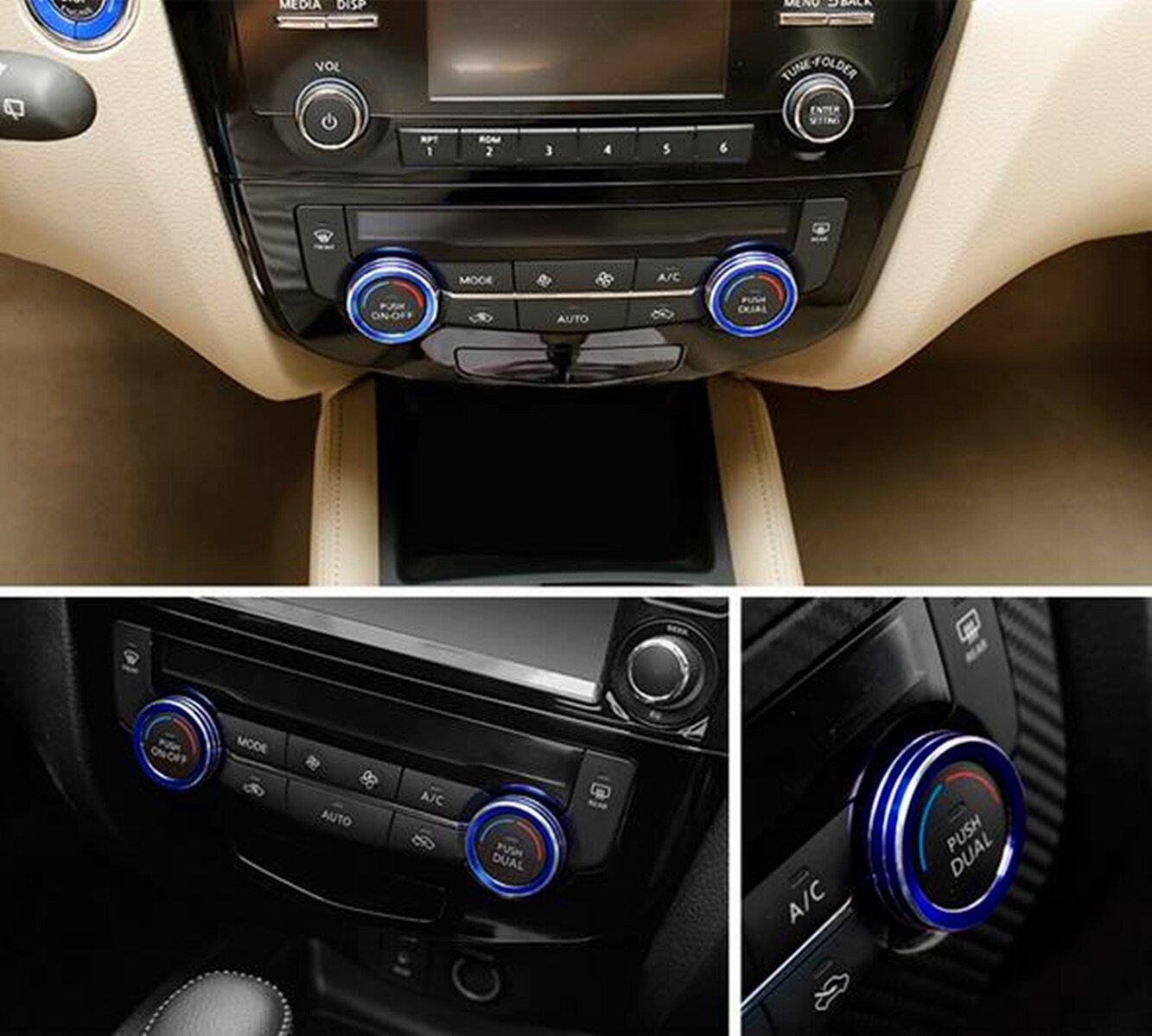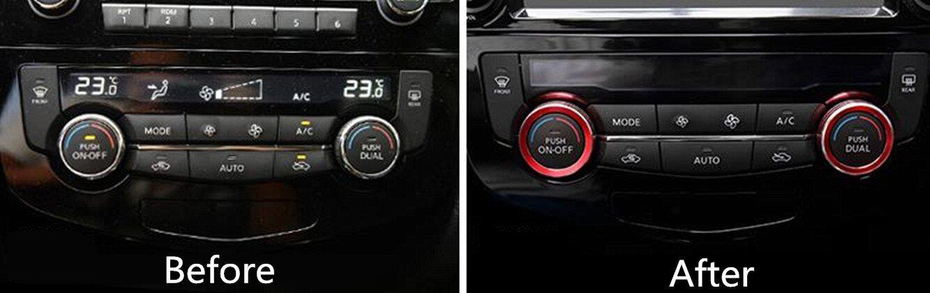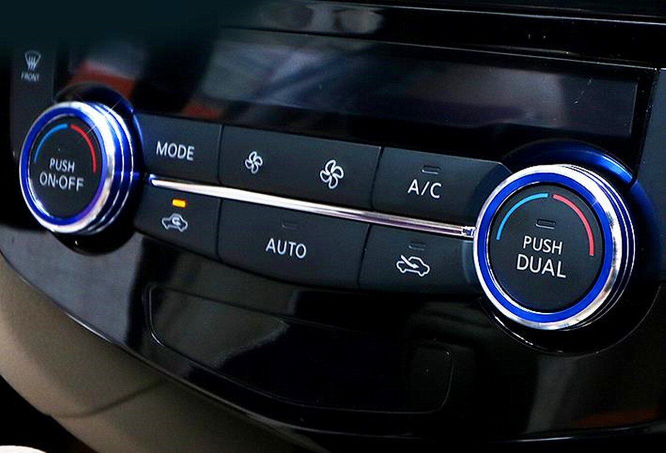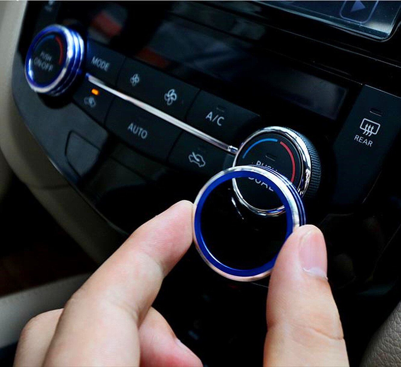 【Tosmisy】適用する日産 エクストレイル T32 エアコン 調整 スイッチ アルミ リング カバー ノブメタル装飾リング に適し2014-現行車種 専用設計 内装パーツ カスタム ドレスアップ 2点セット,ブルー
