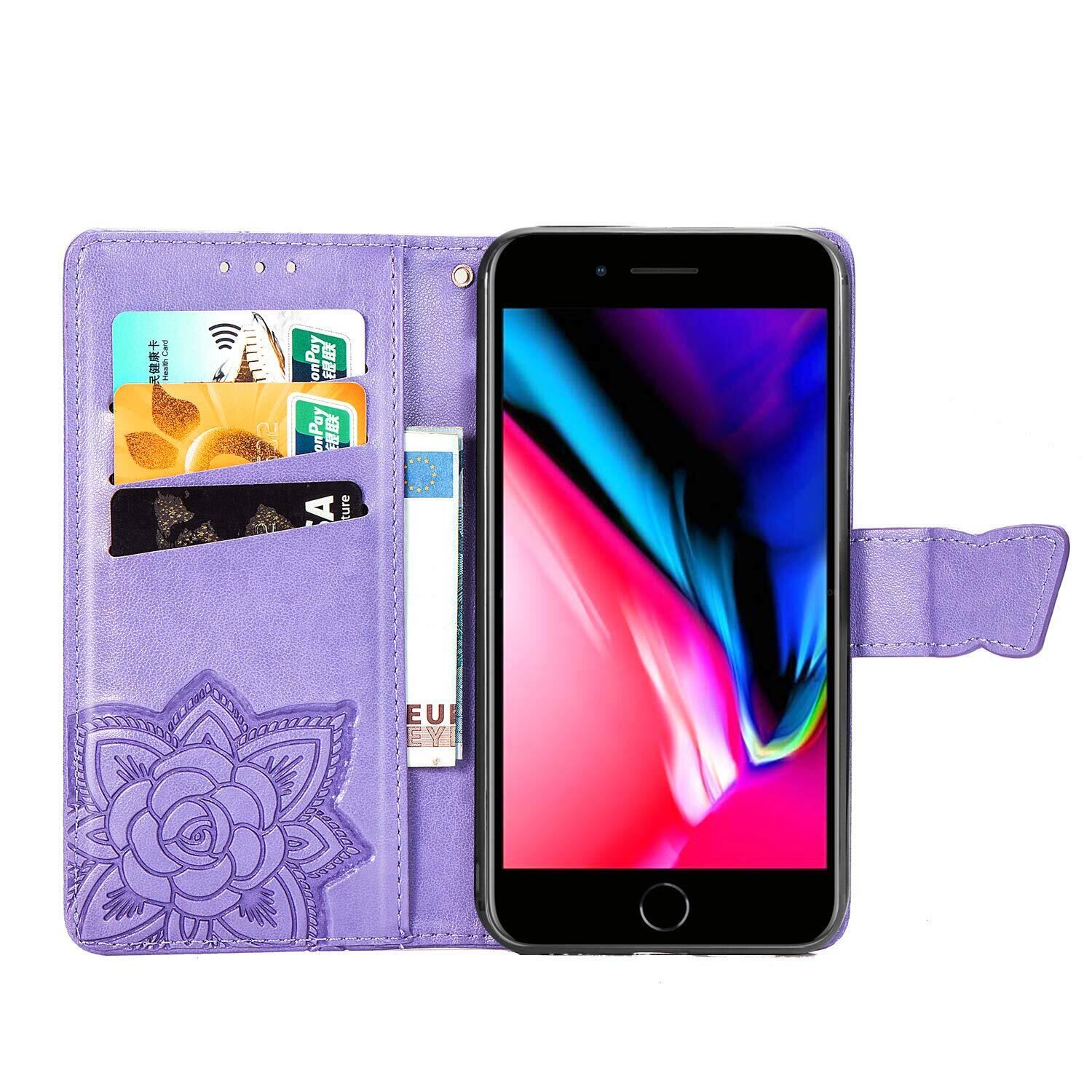 に適用するiPhone SE 第3世代 (2022) / iPhone SE 第2世代 (2020) / iPhone8 / iPhone7 ケース 手帳型 ノートブック型携帯電話保護カバー多機能携帯電話ホルスター財布携帯電話ホルダーバンプパターンテクスチャ耐久性摩擦耐性携帯電話ケース男性と女性に適した多色オプション (バタフライラベンダー)