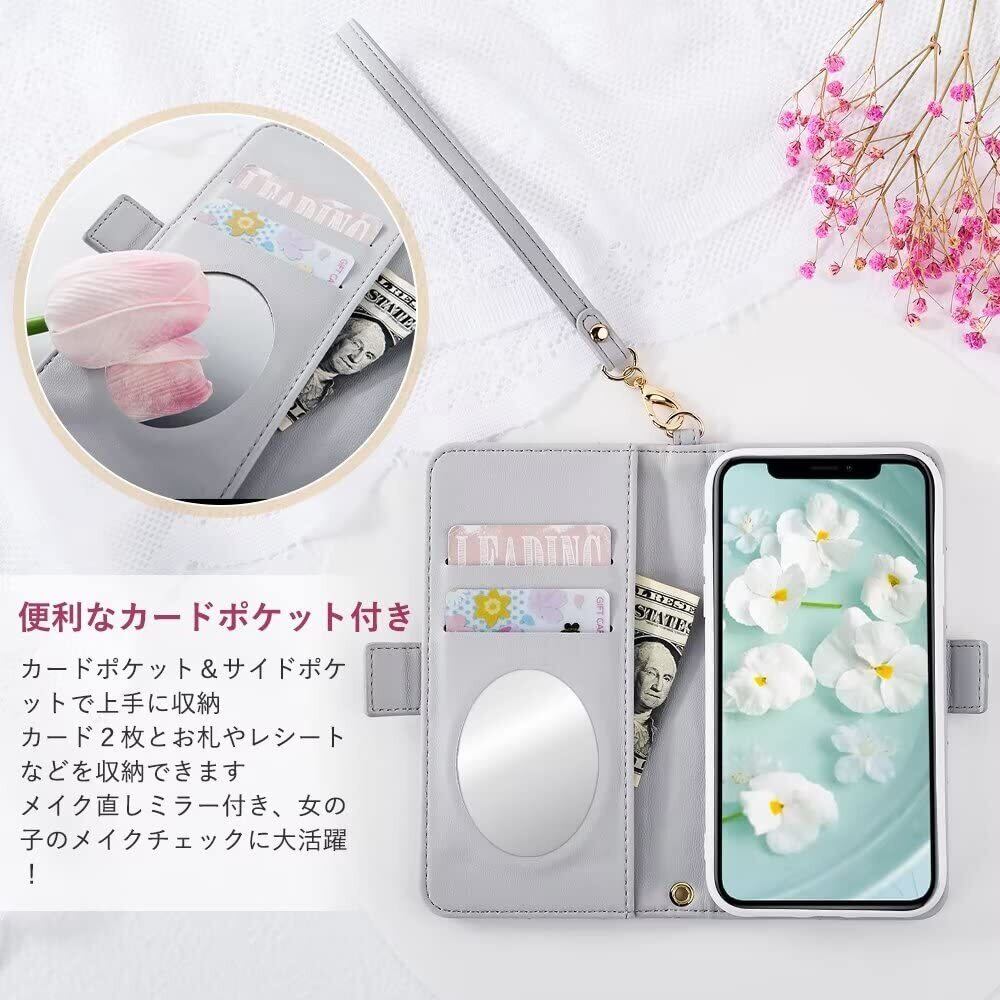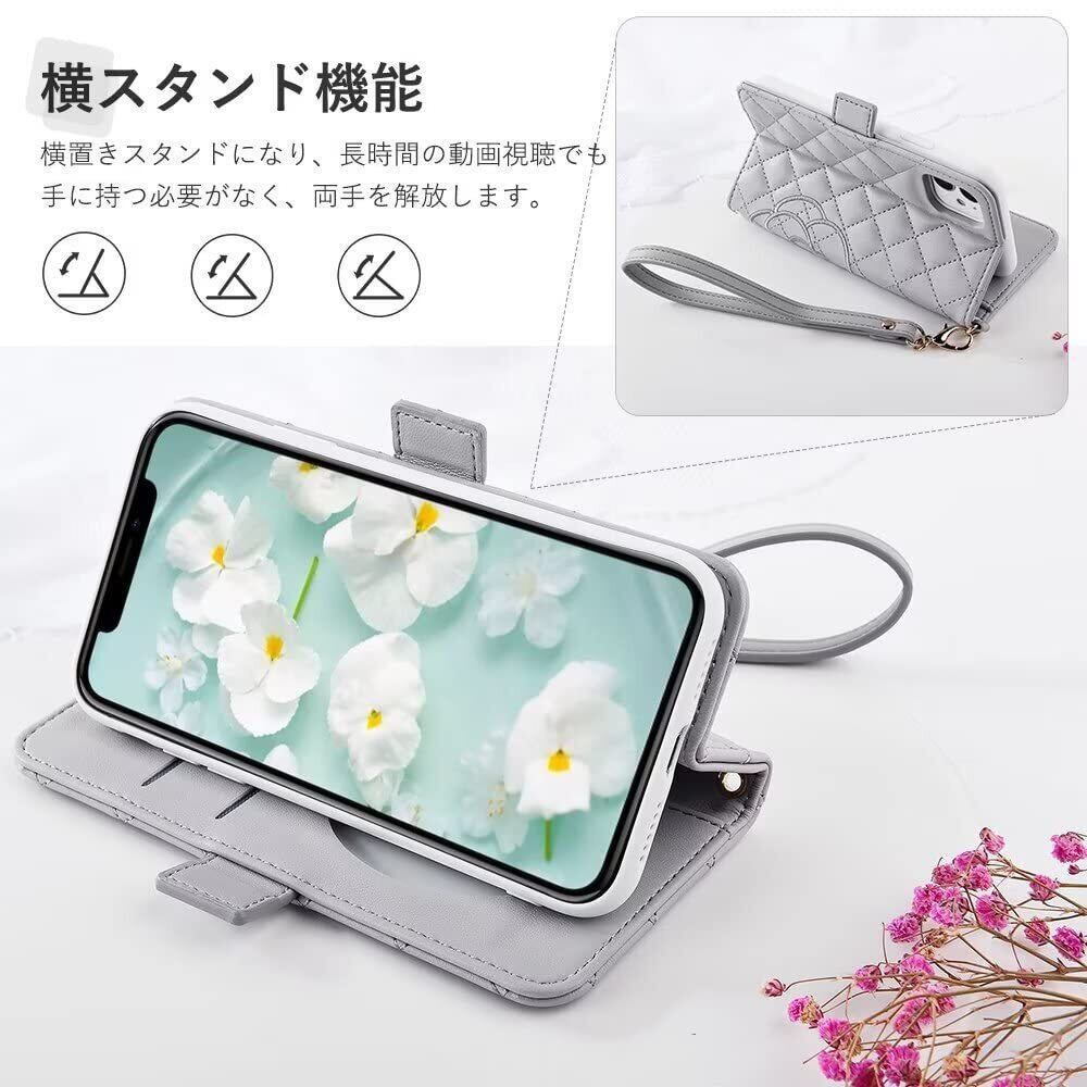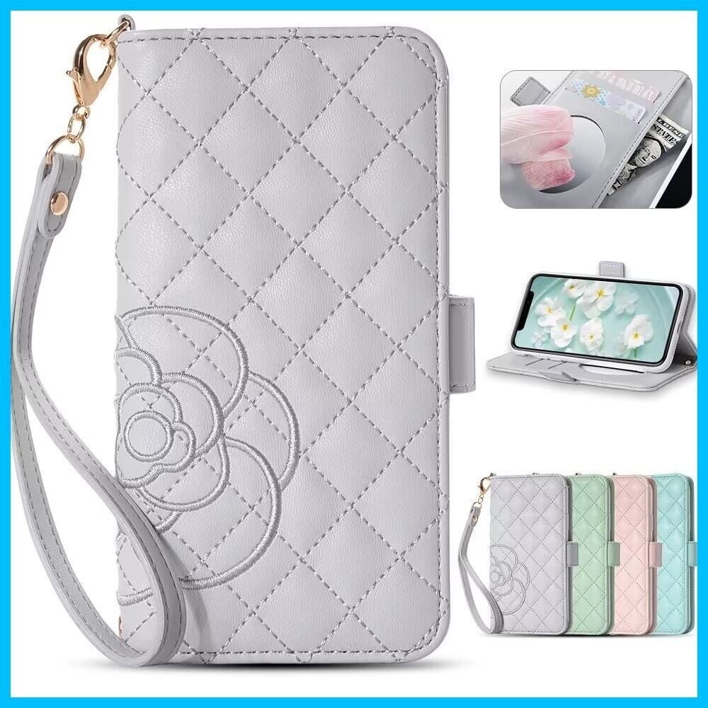 Englaph iPhone 13 ケース 手帳型 iphone 13 手帳型ケース 可愛い iphone ケース 13 手帳型 かわいい スマホケース アイフォン 13 携帯カバー手帳型 iphone 13 スマホケース手帳型 ツバキ(椿) サザンカ 刺繍 iphone 13 携帯 カバー 手帳型 女性 上品 手触り 可愛い iphone 13 ケース カード収納 手帳型 クリスマスプレゼント 花柄 スマホケース iphone 13 ケース レディース 贈り物 美しい手帳型 鏡つき iphone 13 絶妙な ストラップ 財布 手帳型 女の子へのプレゼント お正月プレゼント (iPhone 13(6.1"),グレー)