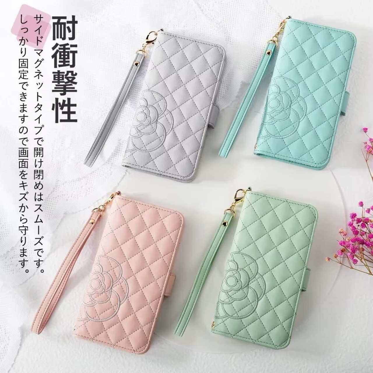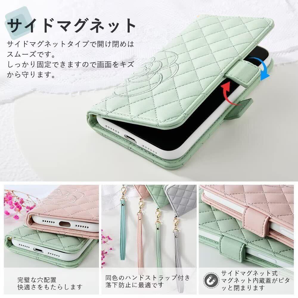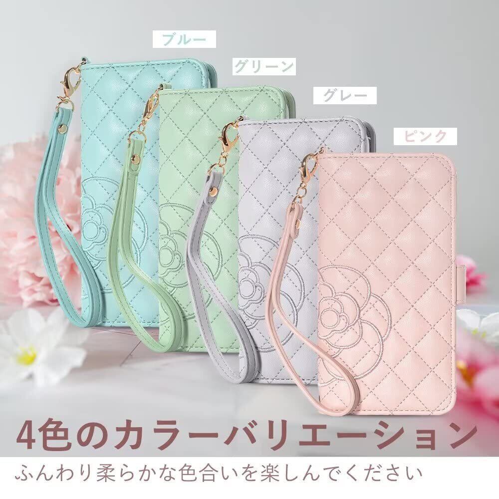 ✿ 【オリジナルデザイン】オリジナルの花柄(カメリア)の刺繍が可愛いケースです。高級感が溢れどんなシーンでも自由に使えます。丁寧に刺繍されたので、糸のほつれを気にする必要がありません。メイク直しミラー付き、お化粧チェックに最適。ステキなハンドストラップ付き、スマホの紛失や落下を防ぎます。