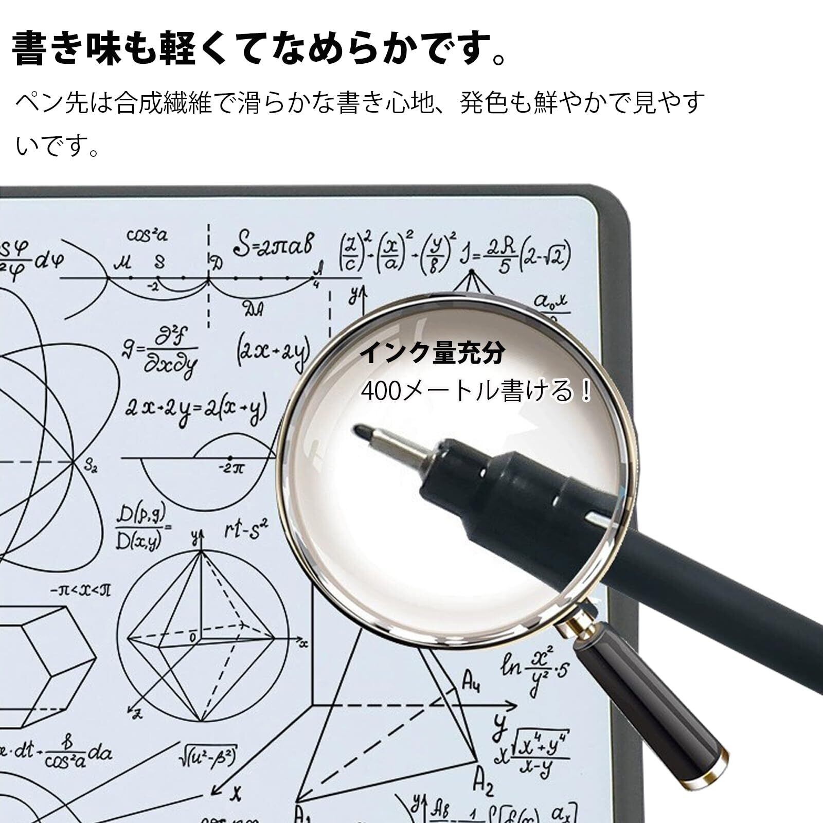 このマーカーは、1本で約400メートル書くことができるインク量を誇り、長時間の使用にも対応。メモボードやホワイトボードでたくさんの情報を書き込むことができ、使うたびにその実力を実感できます。効率的な学習や仕事のサポートに最適です!