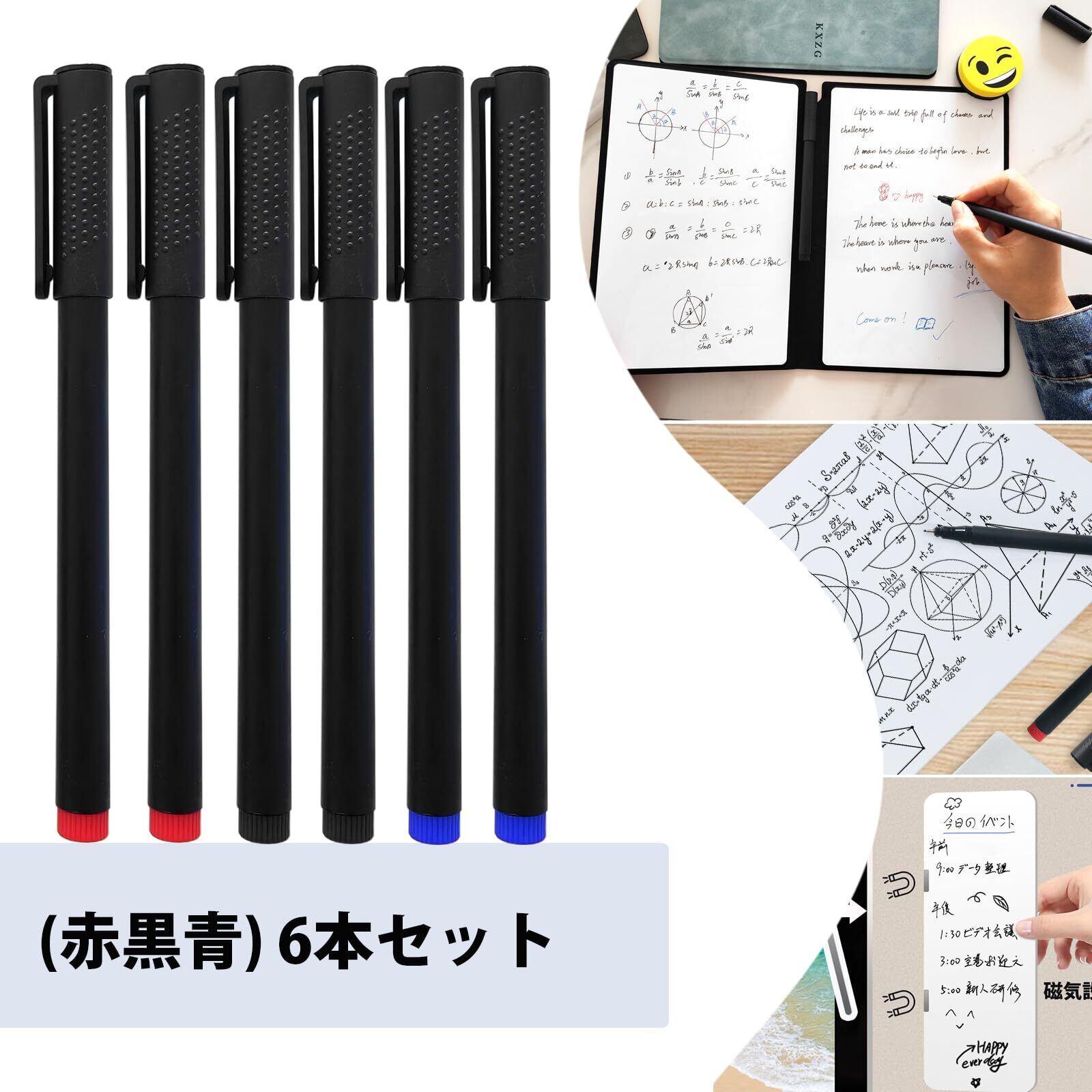 ZiSyouMaのホワイトボードマーカーは、0.5mmの極細書字設計で、細かいメモやアイデアの記録に最適です。黒、青、赤の3色が揃った6本セットで、さまざまなシーンで役立つこと間違いなし!オフィスや家庭、学校など、幅広い用途に対応します。
