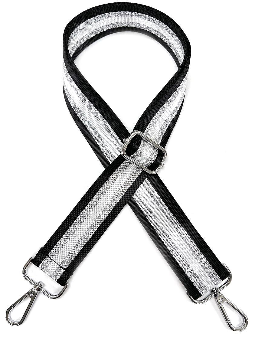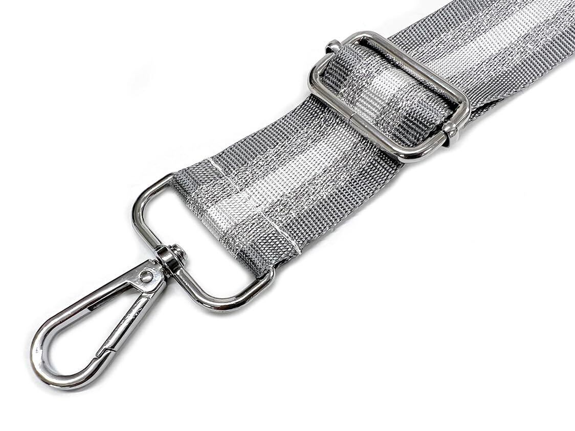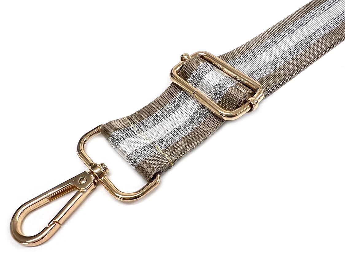 [Estimation エスティメイション] ショルダーストラップ バッグ ショルダー ベルト 肩掛け 幅広 太め ワイド 単品 付け替え 交換用 肩紐 ラメ ストライプ BAG STRAP SHOLDER (ストライプシルバーベージュ)