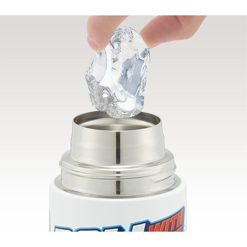 氷が入れやすいワイド口径、真空二重構造で保冷力UP/誤作動によるキャップの開閉を防ぐロック機能付