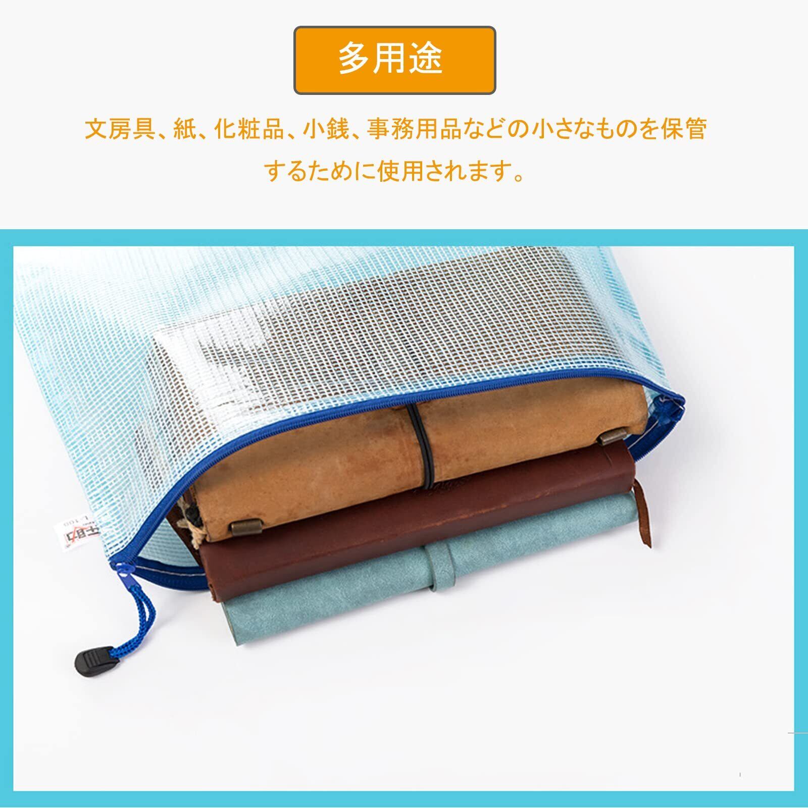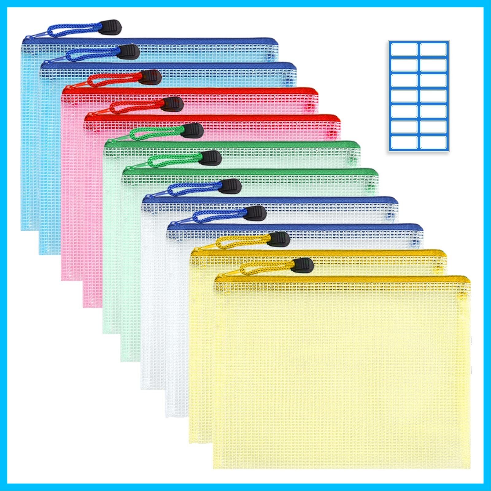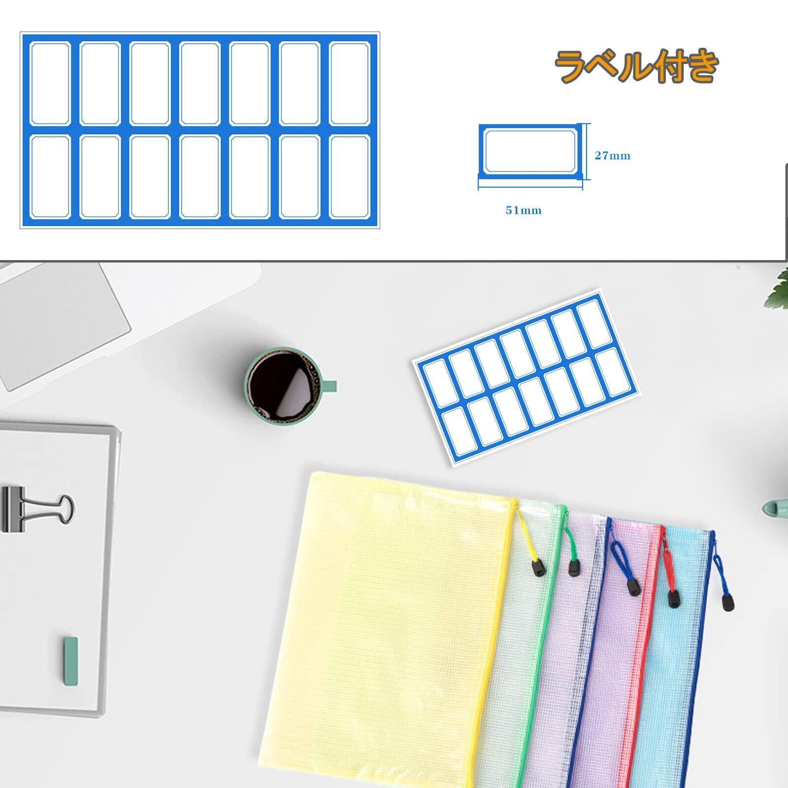 DY.2ten ジッパー式ファイル袋 A5 10個 メッシュファイルバッグ 5色 クリアファイル メッシュケース ファスナー付きポーチ ドキュメントバッグ 書類ポーチ 防水 領収書 ファイル 学校 オフィス用品 旅行用品 化粧品 書類 おもちゃ ラベルシール付き