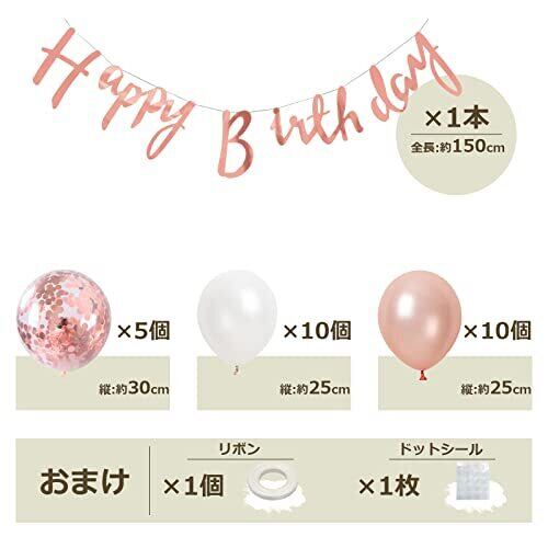 誕生日 バルーン 風船セット 飾り付け 20歳 happy birthday ガーランド バースデー 飾り ハッピーバースデー 大きい数字 紙吹雪風船 パーティー プレゼント サプライズ 大人 女の子 ローズピンク