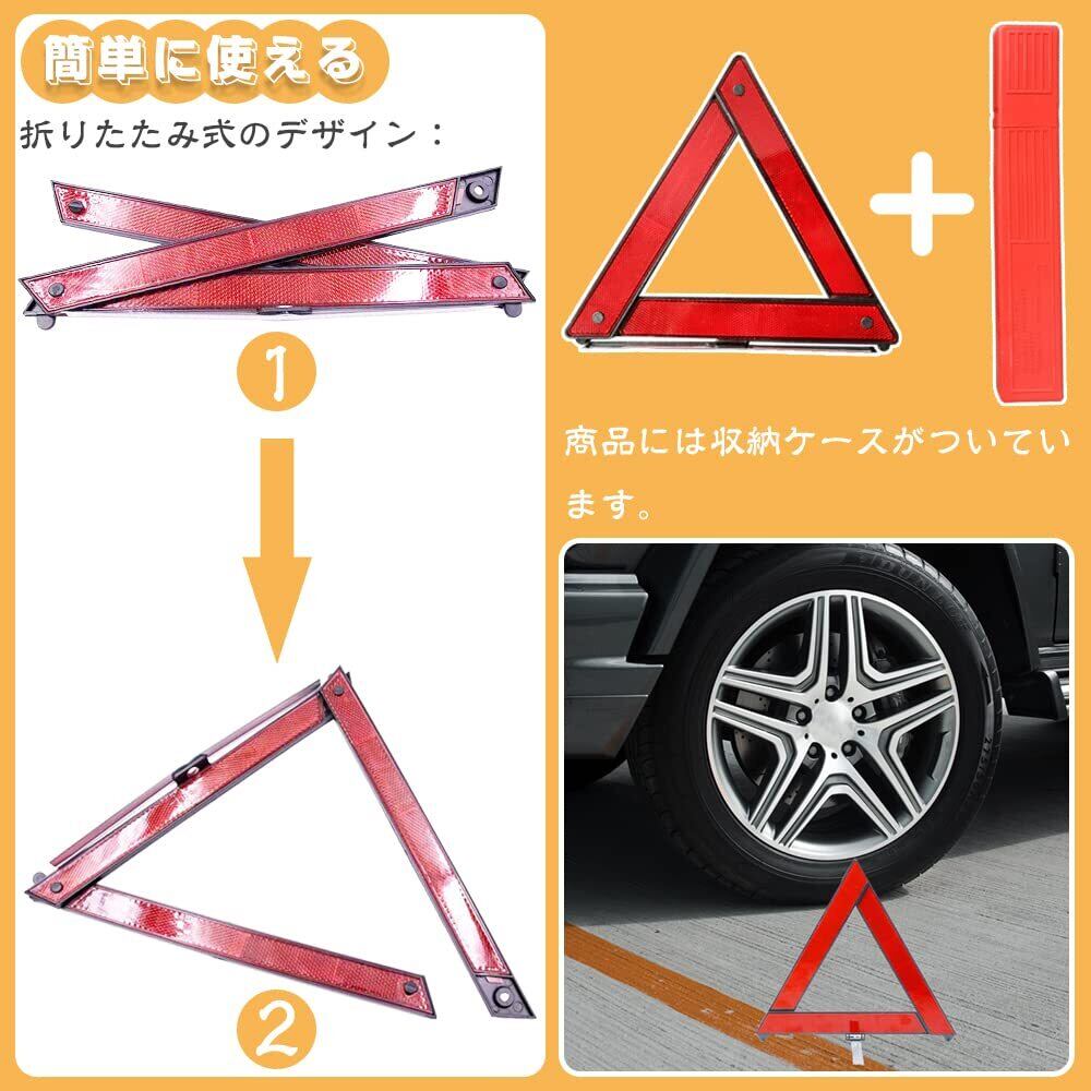 三角表示板 車載用 三角停止表示板 2個セット 反射板 緊急停車 停止版 停止表示機材 事故緊急停止 警告板 警告サイン 車載工具 安全警告 車緊急対応用品 昼夜間兼用型 追突事故防止に 折り畳み式 収納ケース付