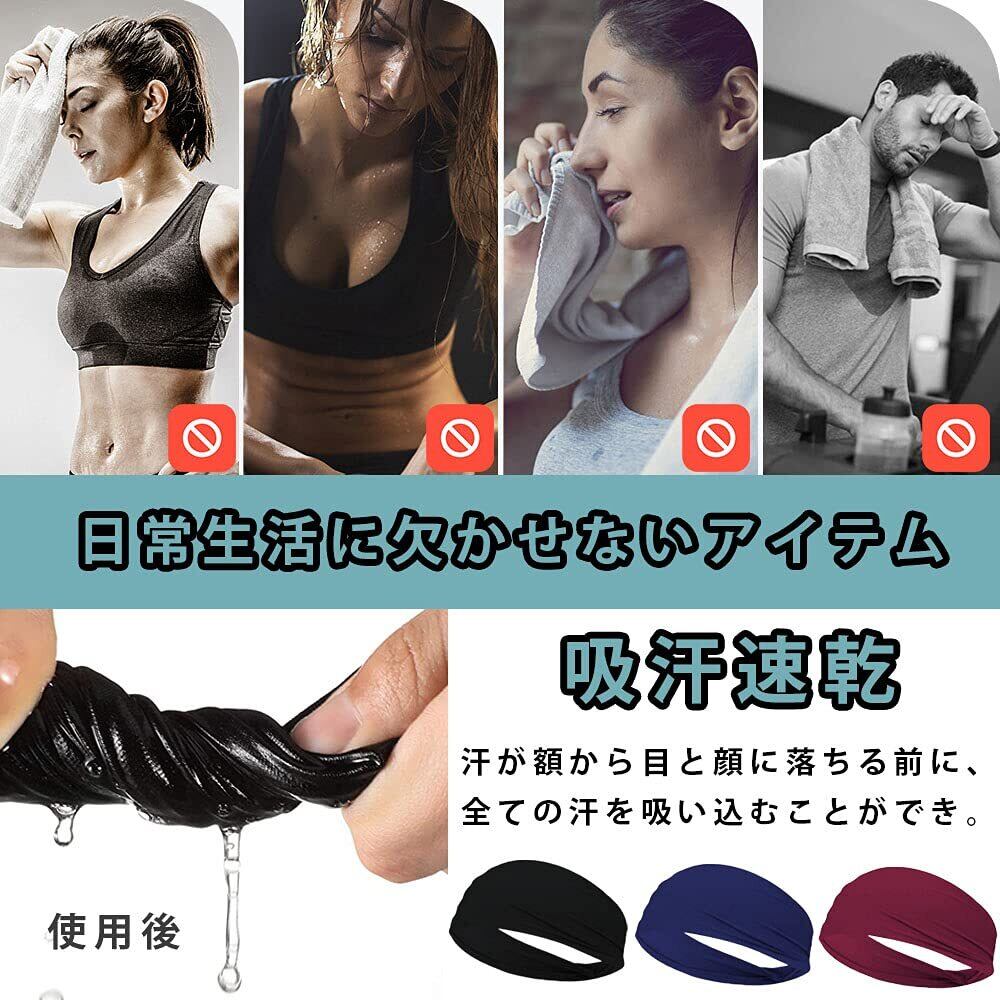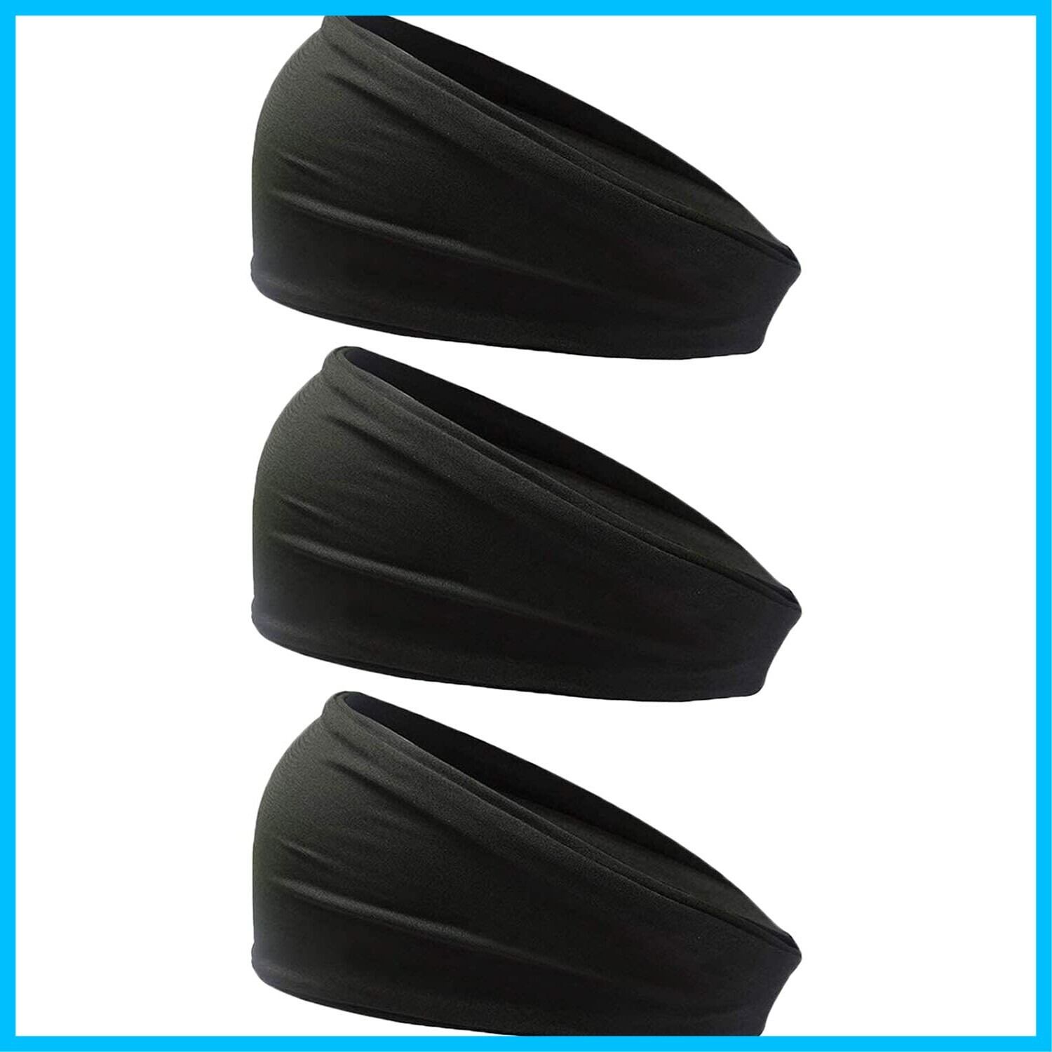ヘッドバンド ヘアバンド メンズ 汗止め 伸縮性あり 吸汗速乾 抗菌防臭 肌触り 柔らかい おしゃれ 薄型 幅広 スポーツ用 ランニング ダンス ヨガ ジョギング サッカー サイクリング 男女兼用 3枚入り (ブラック+ブラック+ブラック)