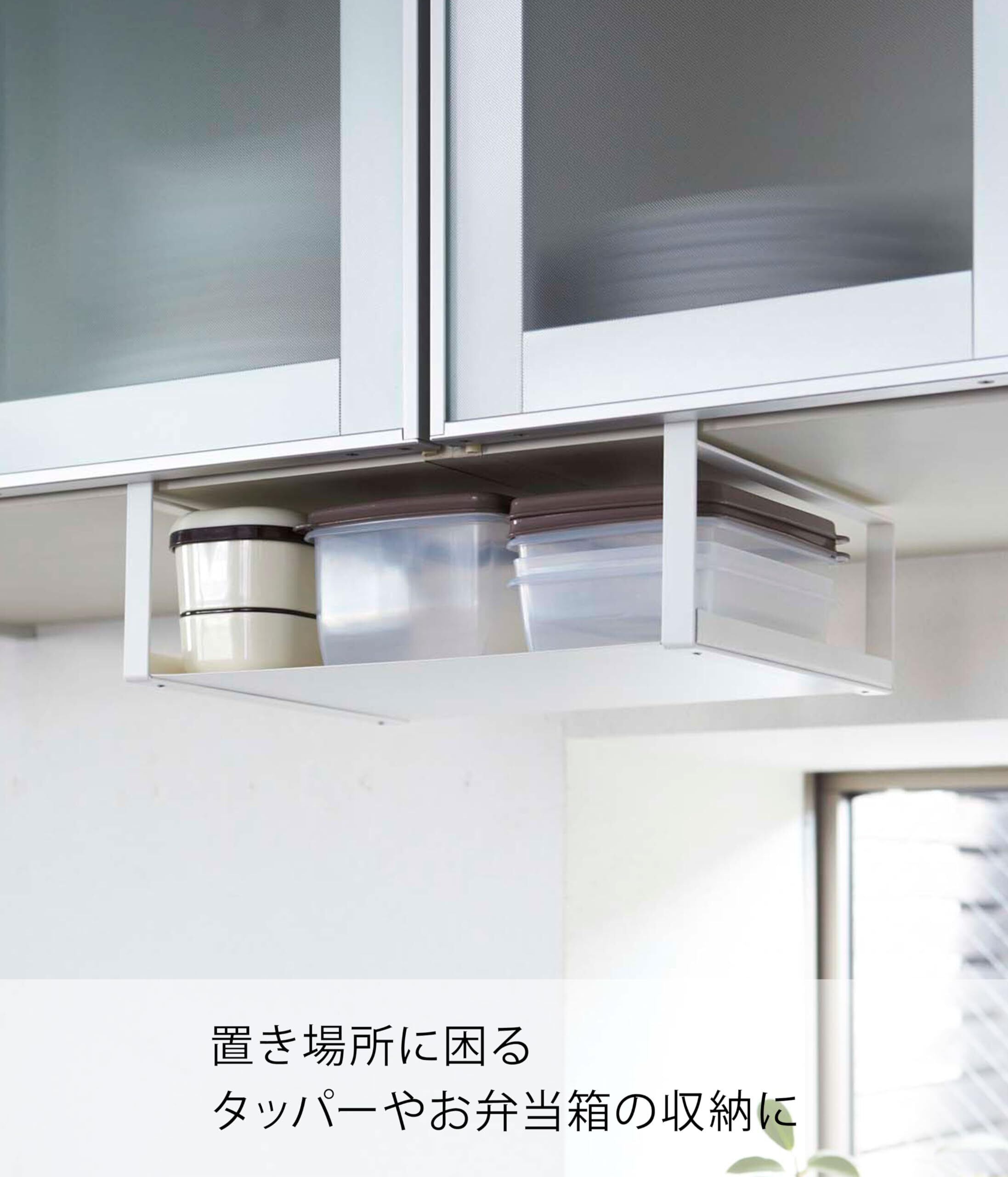 取り付け可能な吊り下げ戸棚:棚板の幅:本品の幅約30.5㎝以上 棚板の厚さ:約2.5㎝まで 扉と棚板との隙間:約3㎜以上が必要です。※ガラス戸棚へのご使用はお避けください。