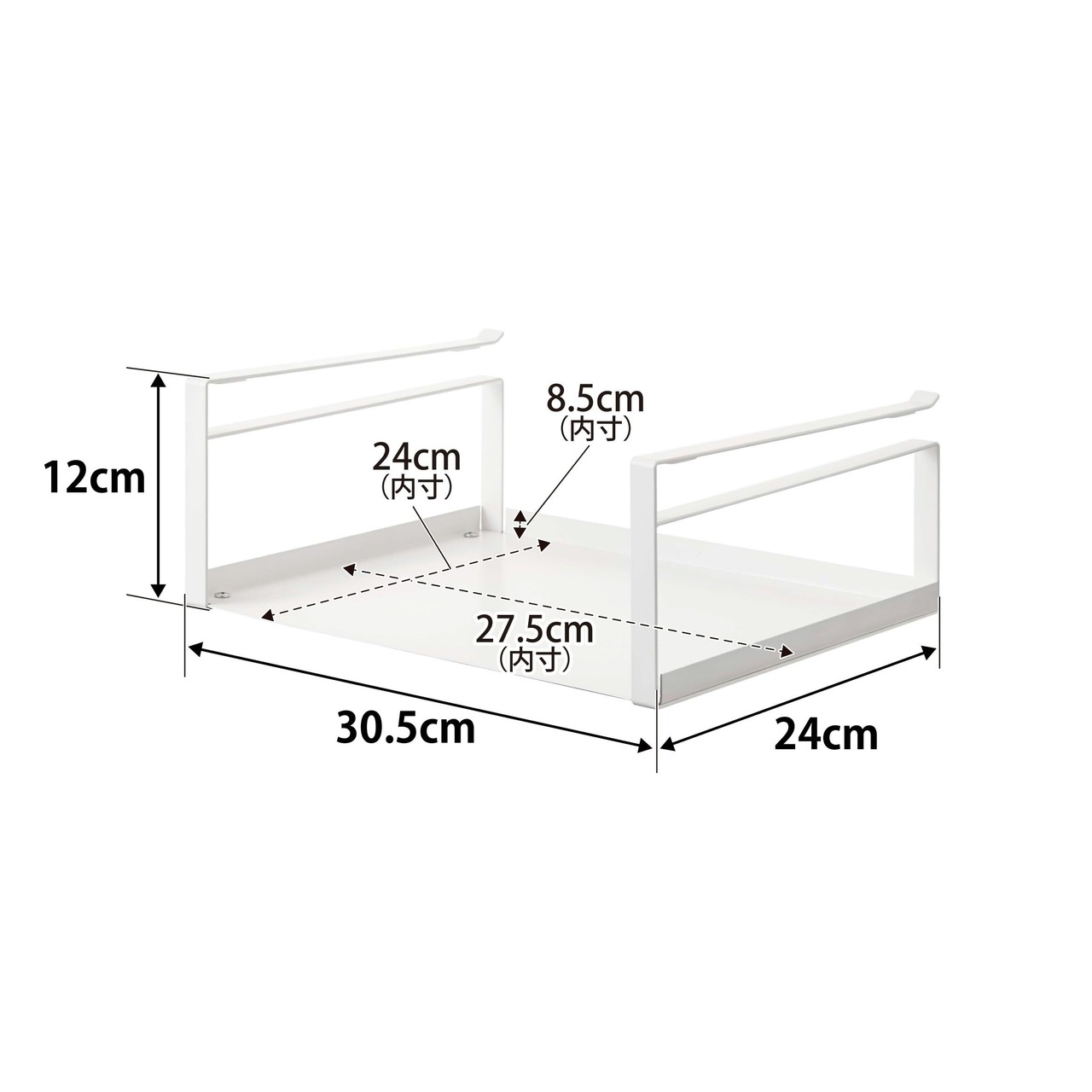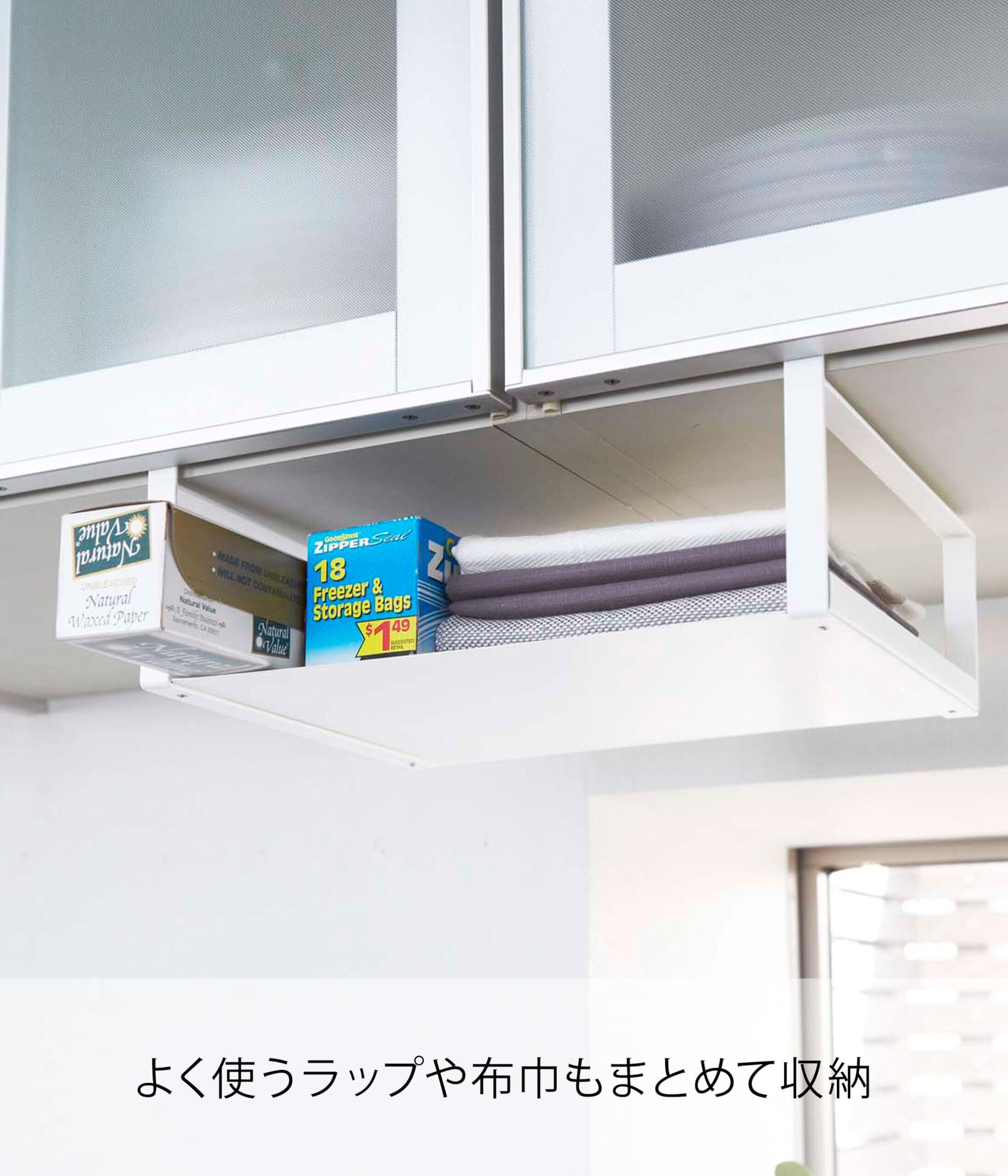 ●白が美しい、シンプルなデザインのキッチン用品 ●キッチンの吊り戸棚に差し込んで使用する、キッチンペーパーホルダー ●使い方はアイデア次第。キッチン小物をたっぷり収納。 ●目線の高さで使いやすく、キッチンスペースを有効活用。 ●キッチンのデッドスペースを利用して収納。カウンター上が広々使え、台所周りがスッキリ。 ●取り付け可能な吊り下げ戸棚:棚板の厚さ1.5~2.5cmまでに対応