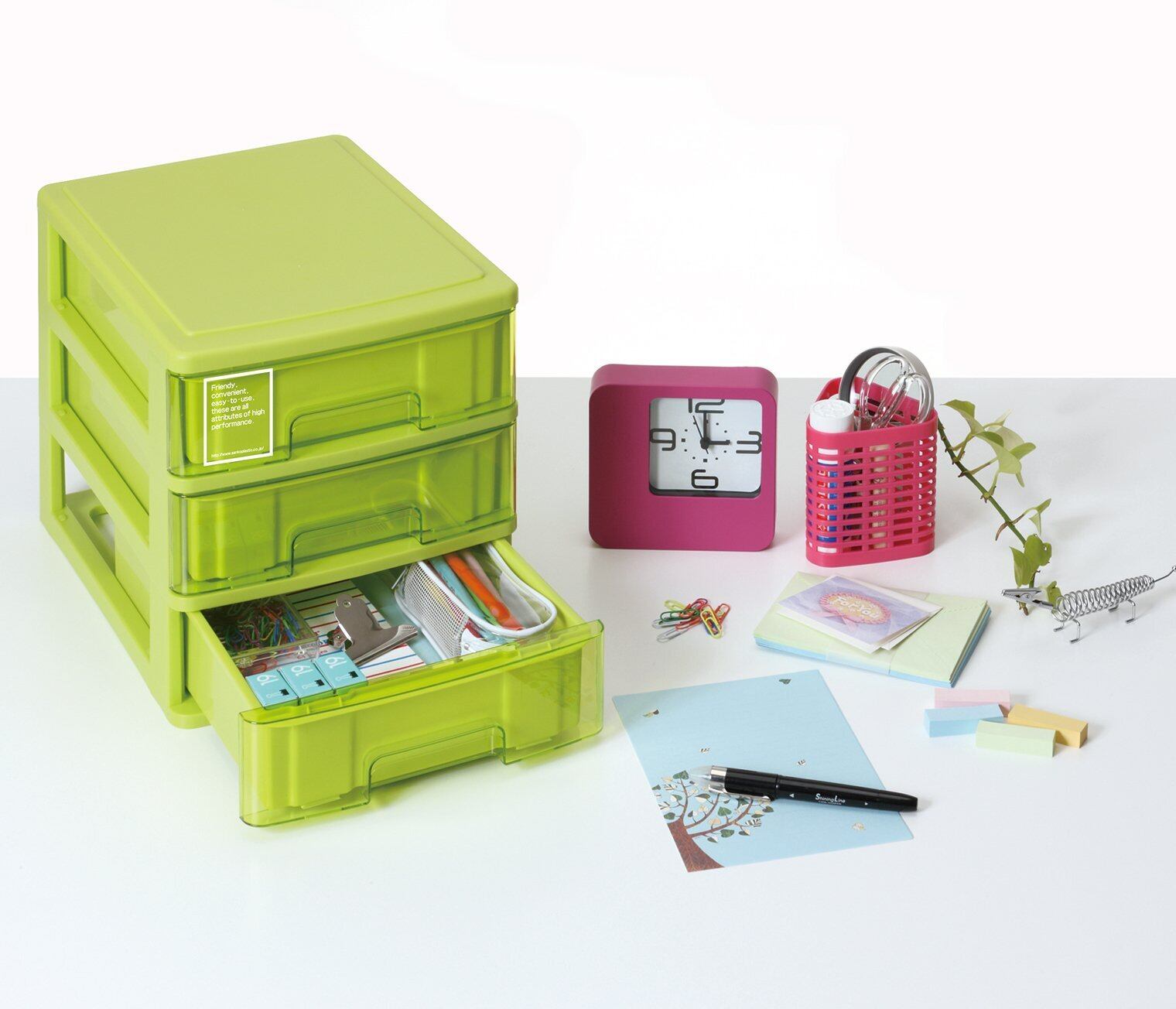幅18.2cm、奥26.5cm、高19cmのコンパクトなサイズでありながら、3段の収納スペースを確保。リモコンや文房具、小物類など、毎日使うアイテムを効率的に収納でき、使いたい時にさっと取り出せます。限られたスペースを有効に活用できます。