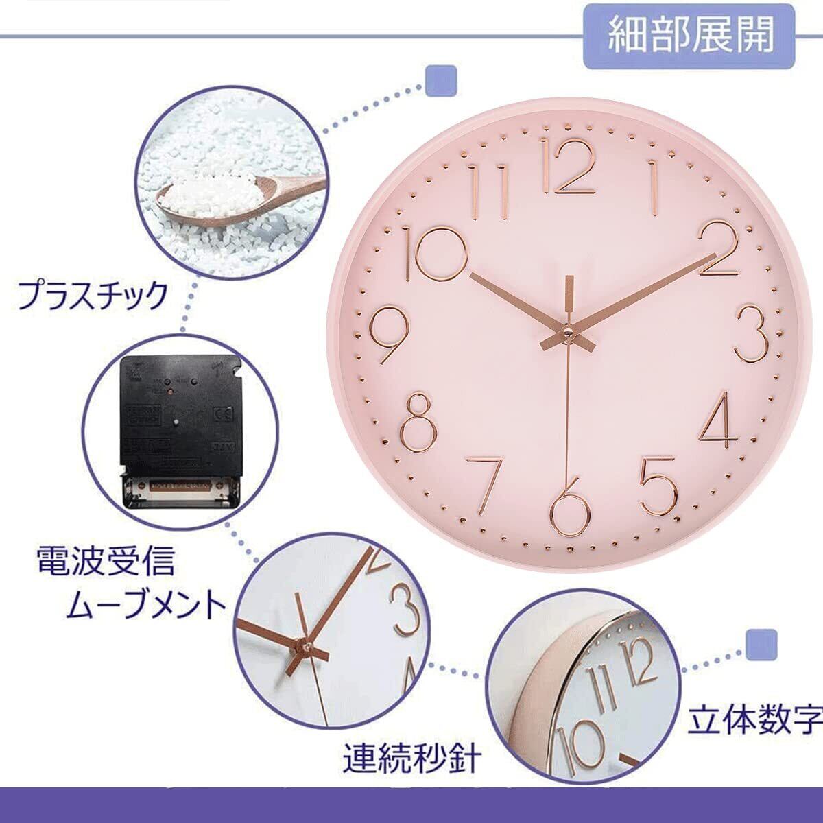 HZDHCLH 掛け時計 電波時計 おしゃれ 壁掛け 時計 北欧 連続秒針 静音 壁掛け時計見やすい 30cm アナログ 夜間秒針停止 (ピンク)