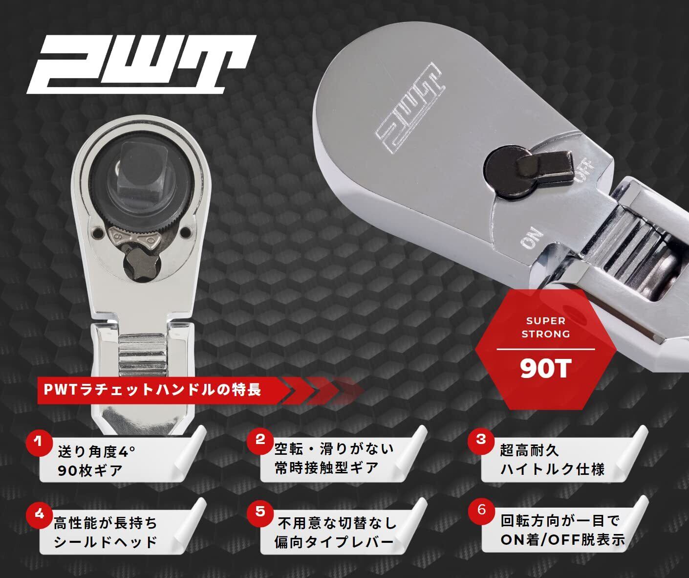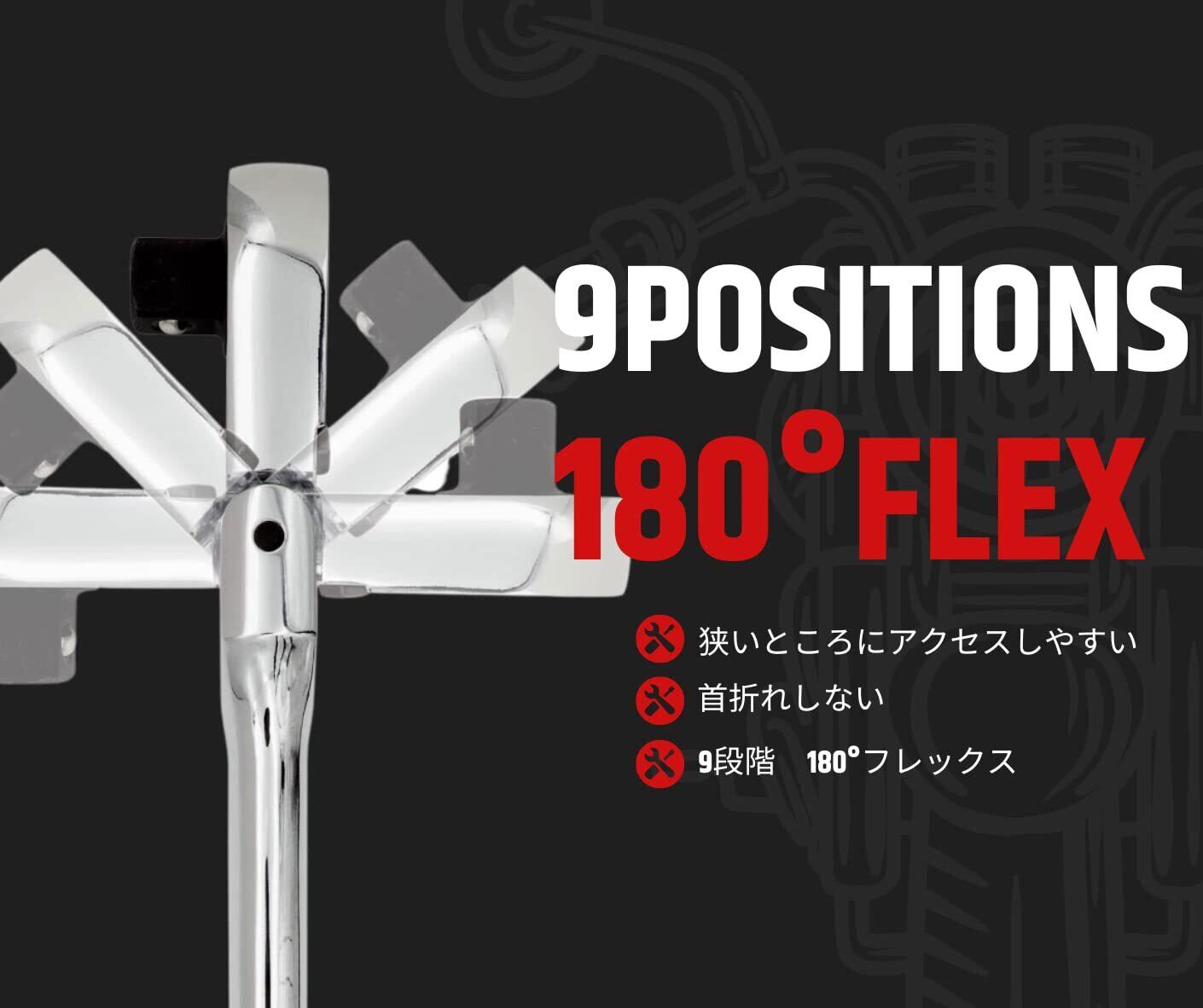 PWT ラチェットハンドル ソケットレンチ 首振り 差込角 9.5mm 3/8インチ 9段階フレックス 長さ8インチ 90枚ギア SRH38FLSH8