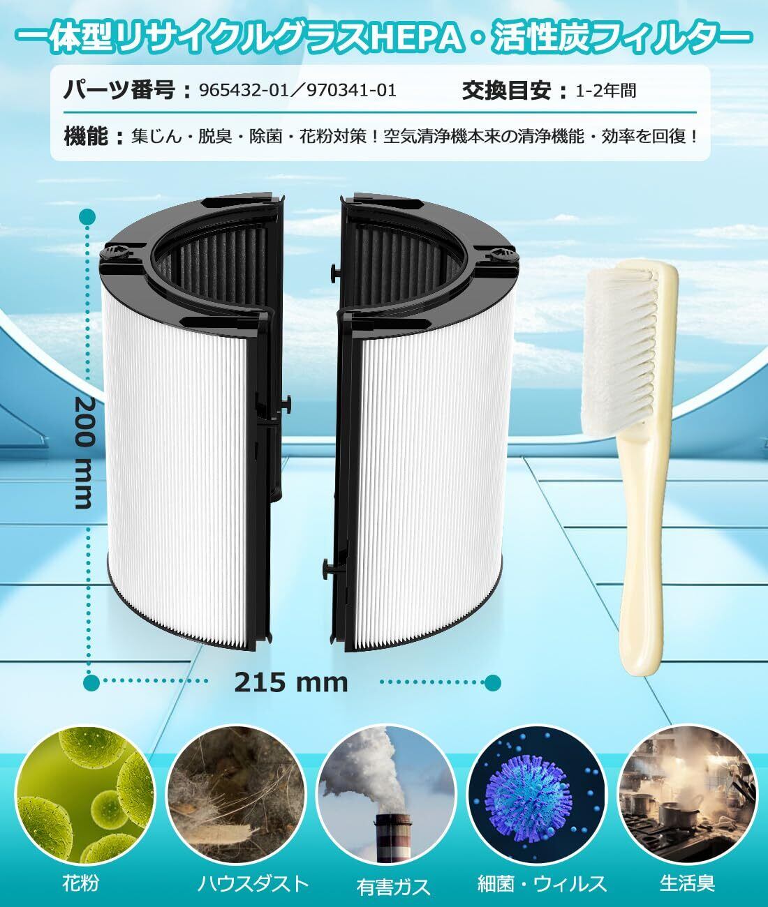 【形名】 965432-01 / 970341-01 一体型リサイクルグラスhepa・活性炭フィルター ※360°グラスHEPA·活性炭フィルターセットのアップグレード版