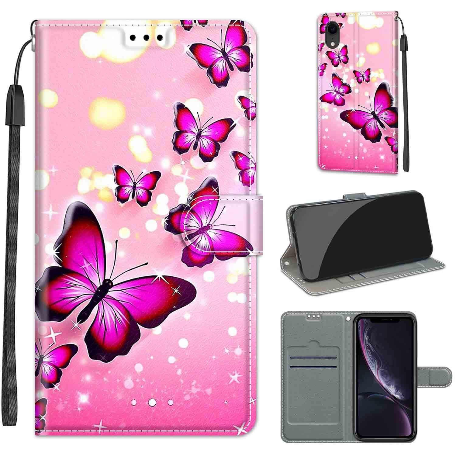 KENHONER 【iphone xrケース 手帳型】iphonexrケース 手帳型 スマホケース iphone xr アイフォンxrカバー 手帳型 アイホンxrケース手帳型 肌触り良い 肌感レザー xr ケース 手帳型 内蔵マグネット 耐衝撃 iphone xr ケース 手帳 全面保護 iphonexr 手帳 防塵 iphonexr手帳型ケース手帳【6.1インチ対応】 ピンクの蝶