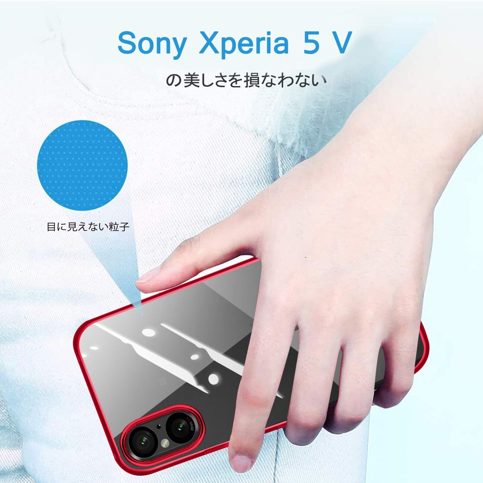 Xperia 5 V ケース クリア SO-53D SOG12 カバー tpu 透明 耐衝撃 スリム TPU 薄型 シリコン 擦り傷防止 黄変防止 赤 メッキ加工 ストラップホール付き Sony エクスペリア5 V ケース (レッド)