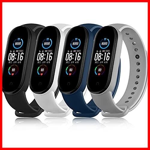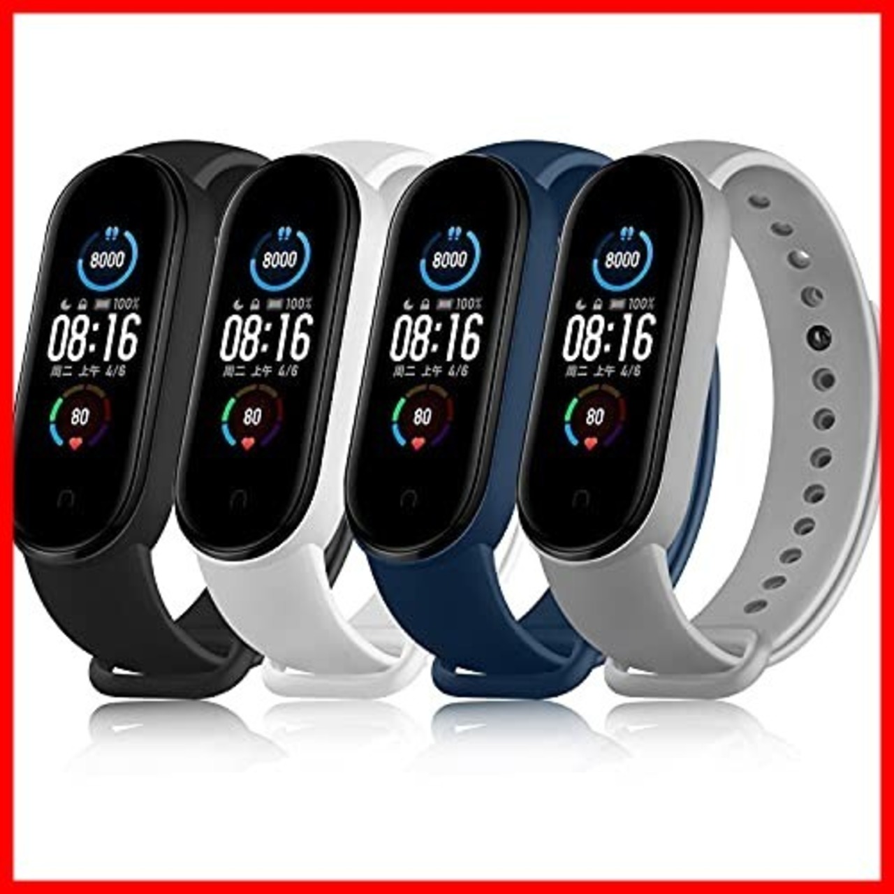 [Vancle] コンパチブル Xiaomi Mi Band 5 バンド/Mi Band 6 バンド 替えベルト 柔らかいシリコン製 交換ベルト 対応 シャオミ5/6 スマートバンド (黒+紺+白+グレー)
