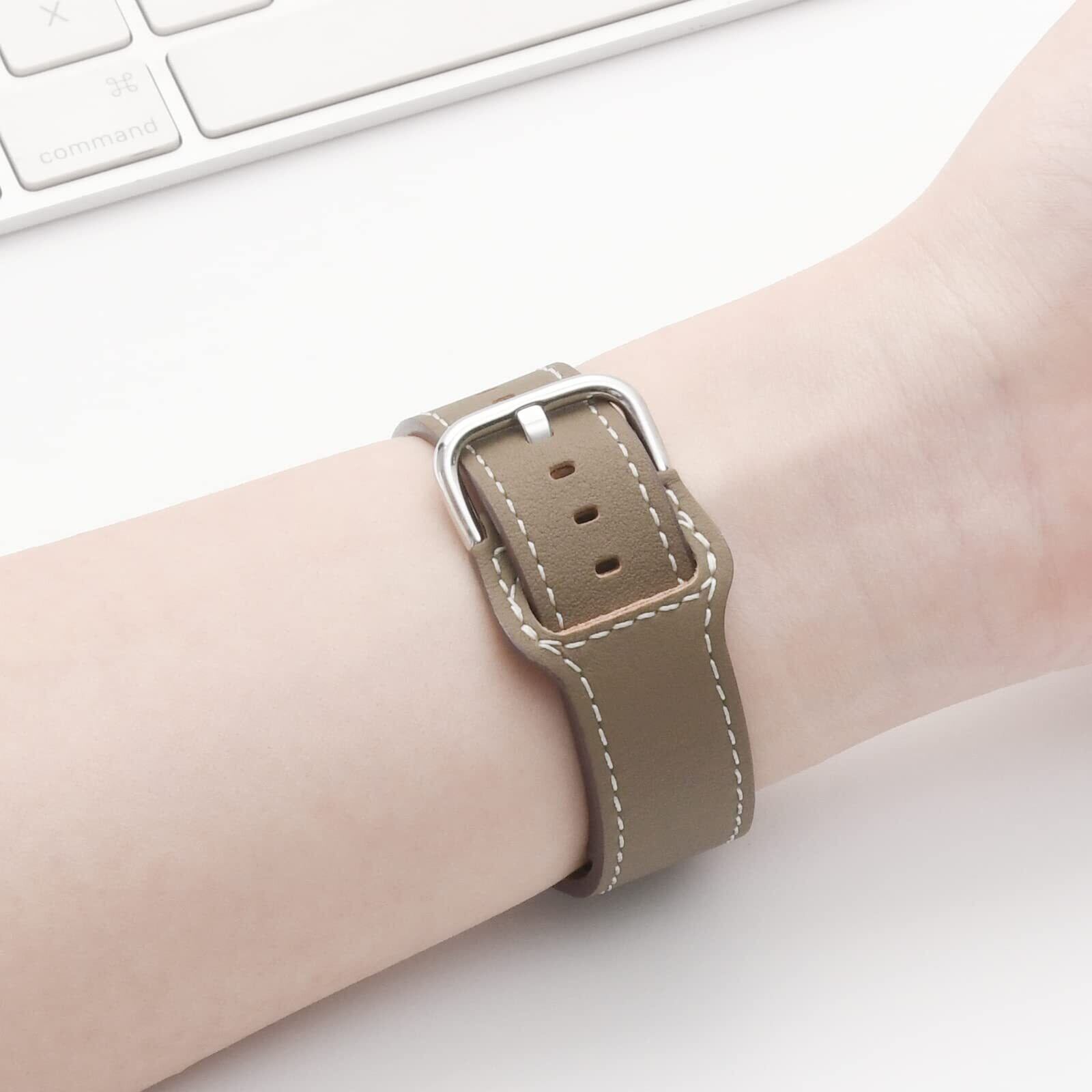 材質は本革製、絶妙でファッショナブルなストラップは、厳選されたトップレザーと高品質のステンレススチールバックルで構成されています。コンパチブルApple Watch 快適で耐久性があります。技量も非常に均一で、簡単にバラバラにならないタイトなステッチを使用しています。