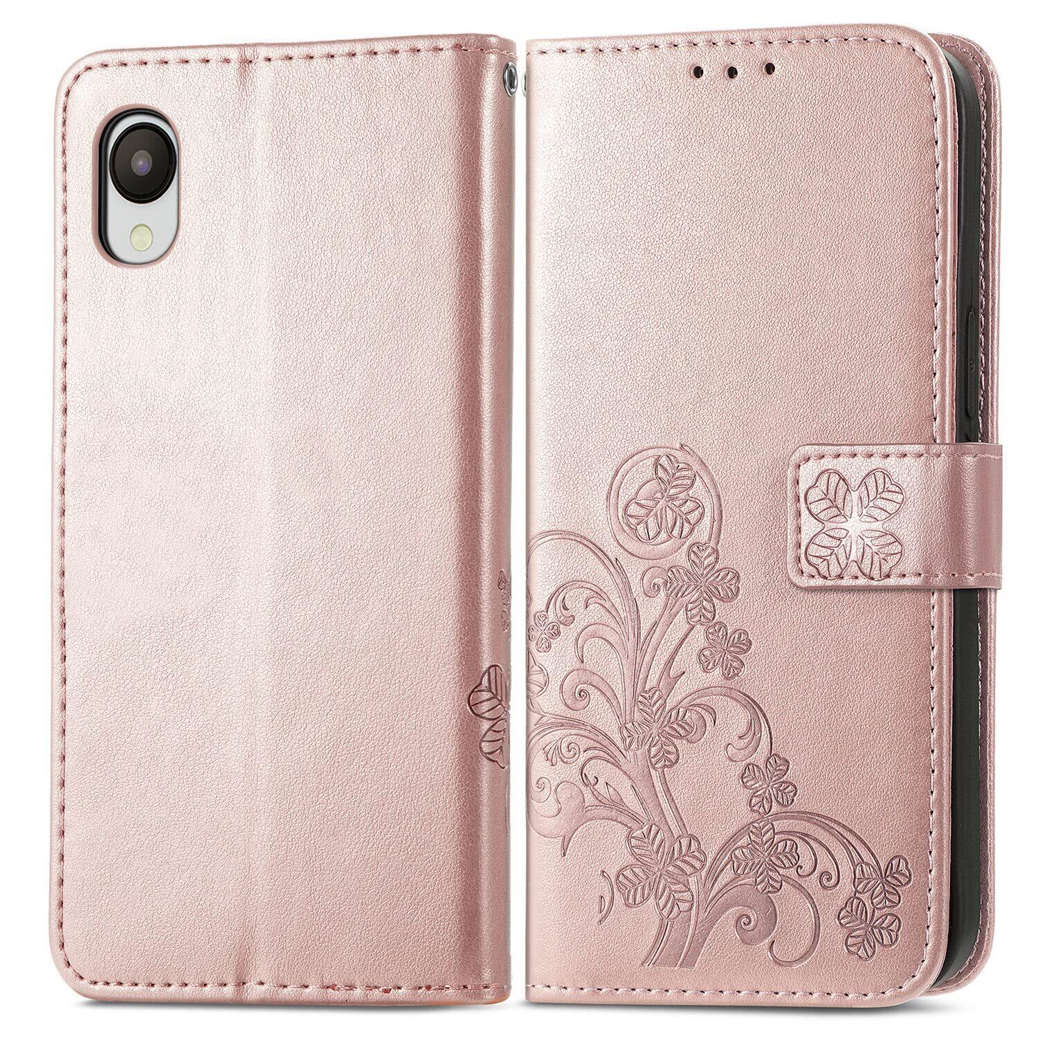 に適用するGalaxy A23 5G SC-56C (docomo) / SCG18 (au) ケース 手帳型 ノートブック型携帯電話保護カバー多機能携帯電話ホルスター 財布携帯電話ホルダーバンプパターンテクスチャ耐久性摩擦耐性携帯電話ケース 男性と女性に適した多色オプション (四つ葉のクローバーローズゴールド)