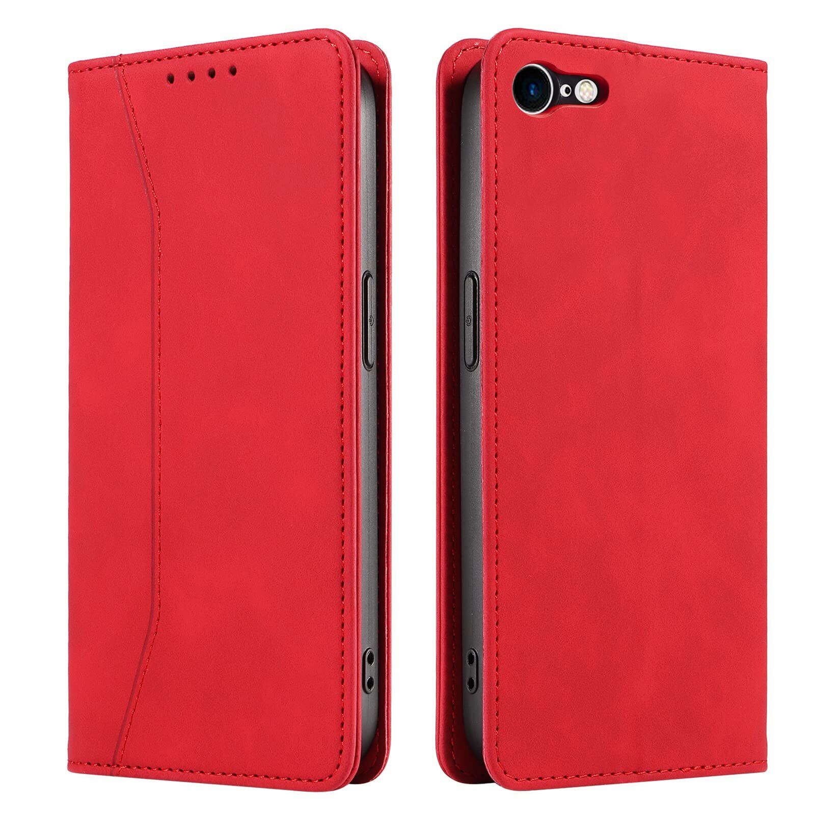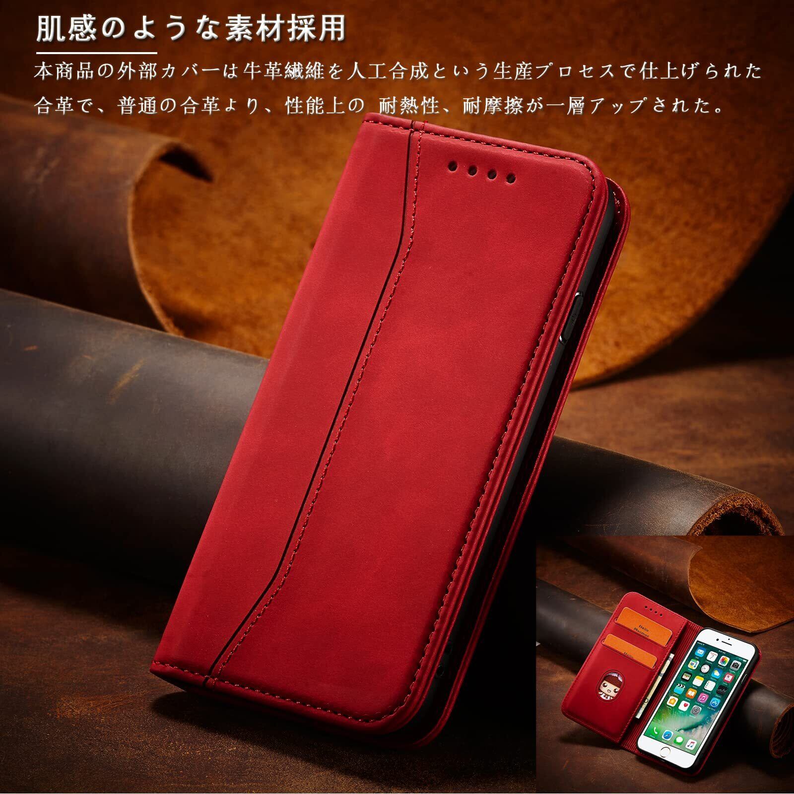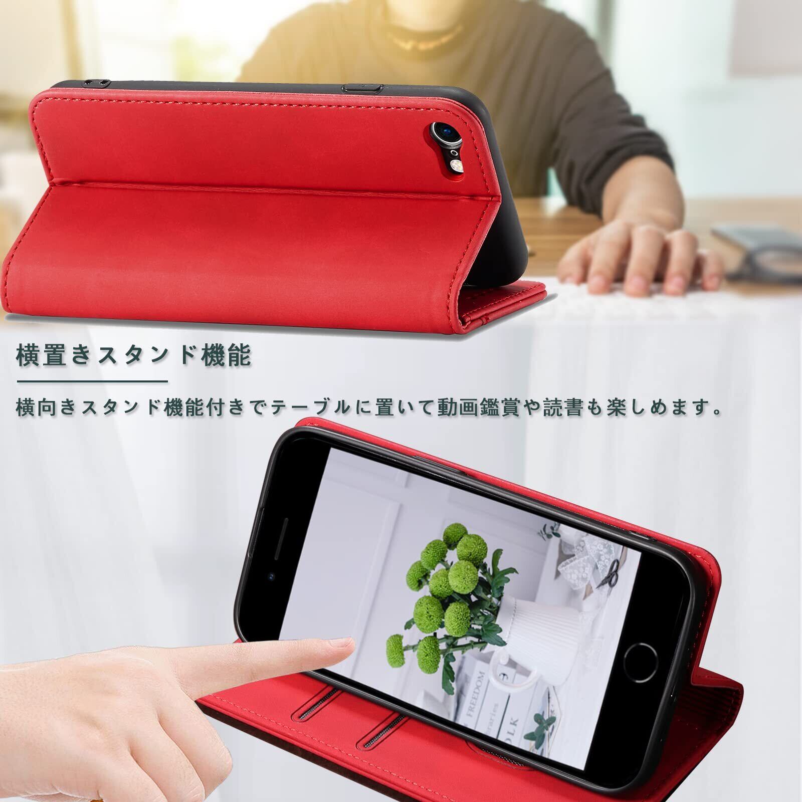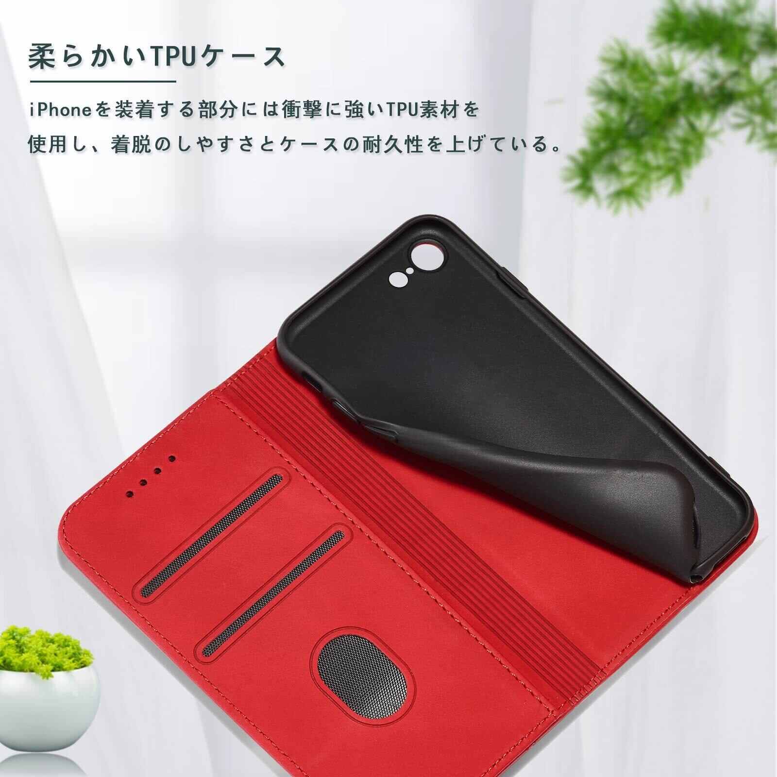 PinLiSheng iPhone SE ケース 手帳型 第2世代 第3世代 スマホケース iPhone 8 7 携帯カバー レザー 軽量 薄型 耐衝撃 耐摩擦 全面保護 マグネット式 カード収納 スタンド機能 4.7インチ対応(レッドの折り目, iPhone8 iPhone7 iPhone SE2 iPhone SE3)