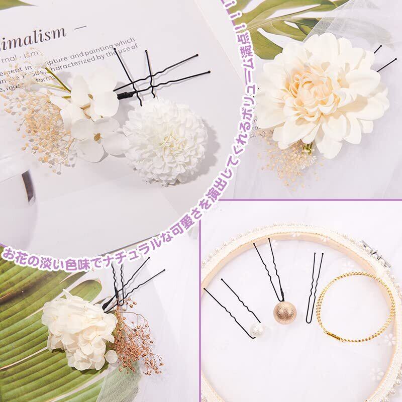 OTAKUMARKET 髪飾り 浴衣 成人式 七五三 髪 飾り 花 袴 着物 振袖 和装 卒業式 結婚式 髪留め 女の子 子供 高級造花 ヘアアクセサリー 4カラー (白)