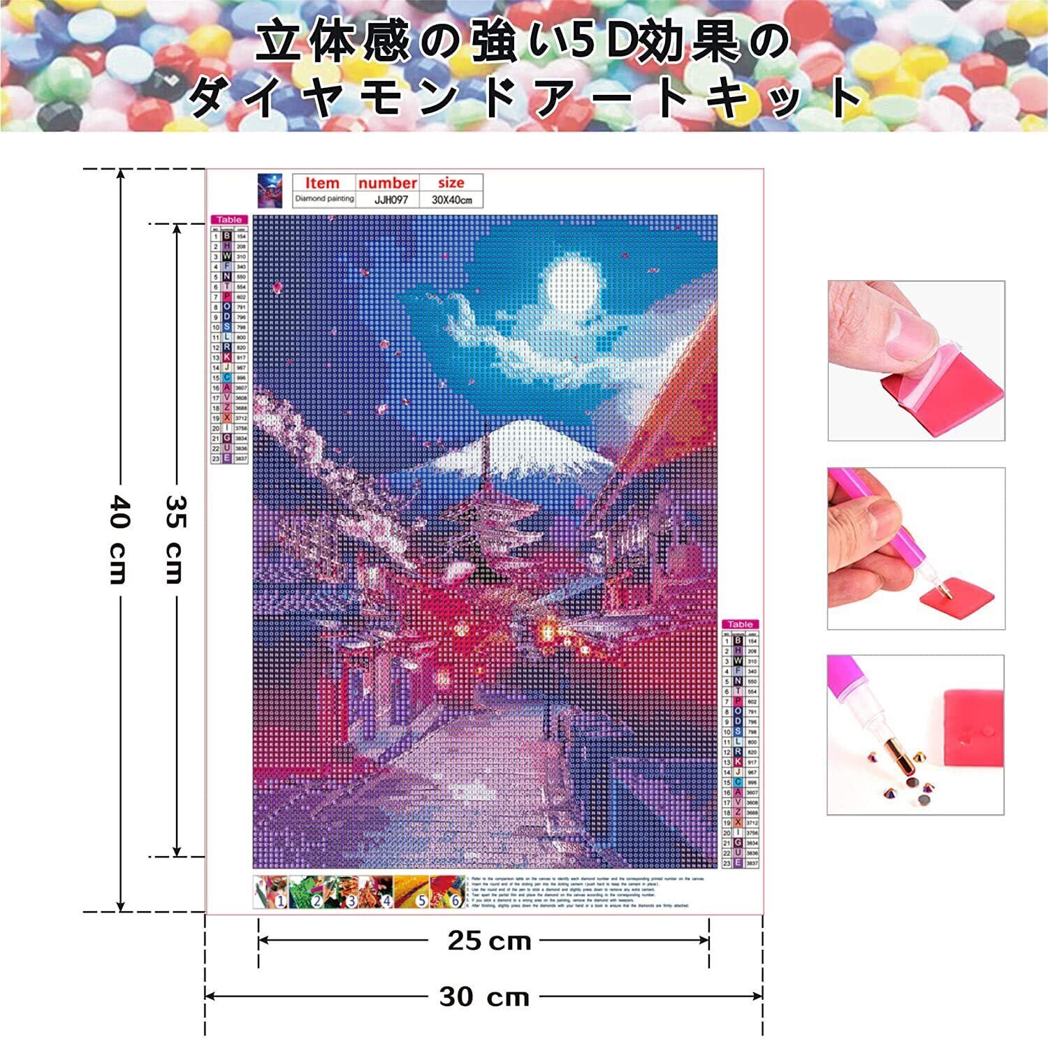 ダイヤモンドアート Rinimie ダイヤモンドアート キット 富士山 ダイアモンドビーズ絵画キット 5Dモザイクアート DIY 手作り絵画手芸キット ダイヤモンド塗装 全面貼り付けタイプ 芸術品 家用装飾 30x40cm