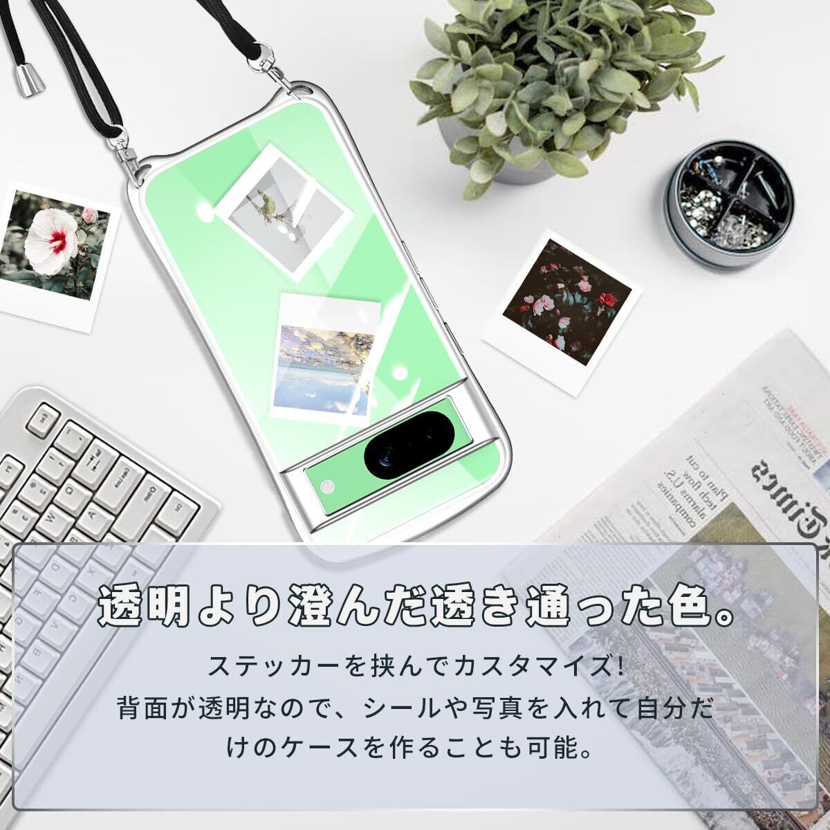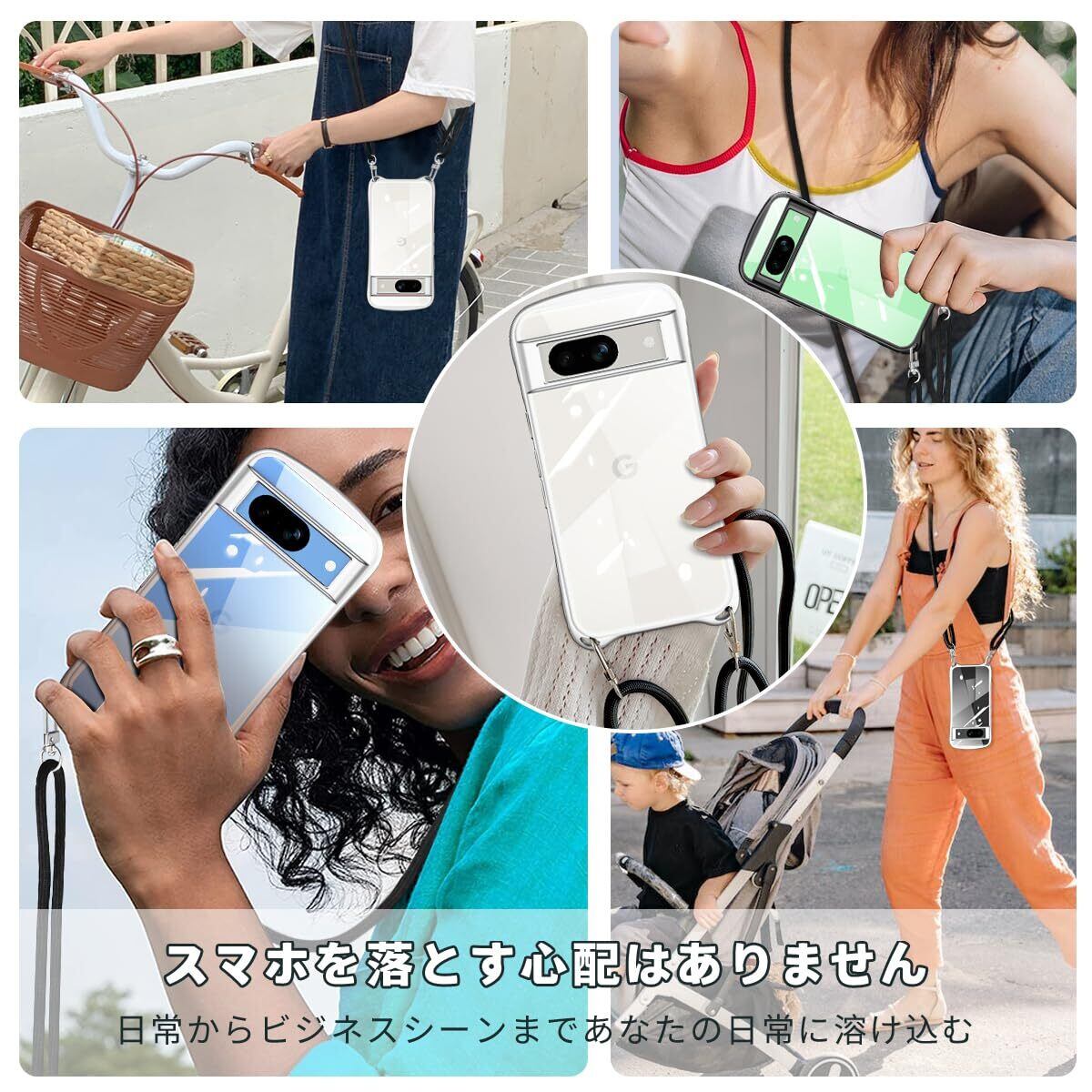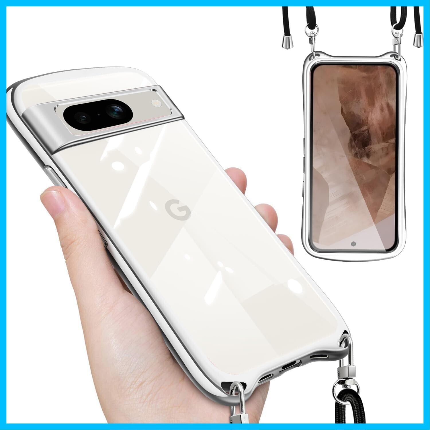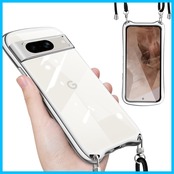 Google Pixel 8a 用の ケース ショルダー ストラップ付き グーグル ピクセル8a クリア カバー 透明 肩掛け 縄掛け 斜めかけ TPU 耐衝撃 全面保護 薄型 韓国 可愛い スマホケース (シルバー)