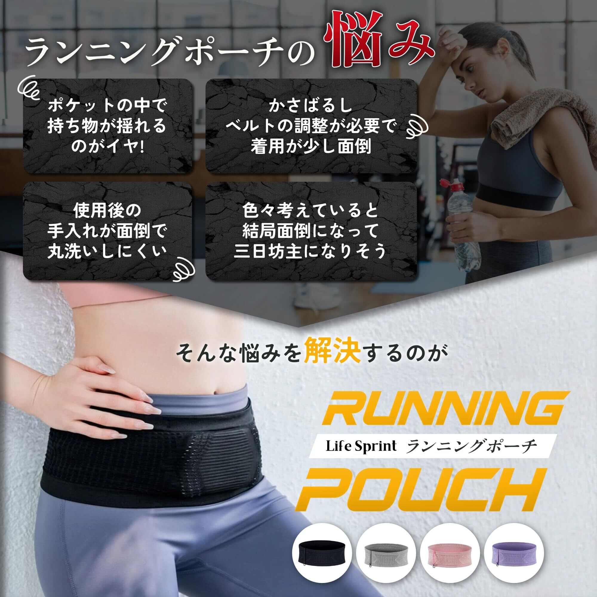 【日本代表選手も推奨】 ランニングポーチ ランニングベルト 揺れない密着タイプ 超軽量コンパクト 洗濯丸洗いOK LifeSprint (M, ブラック)
