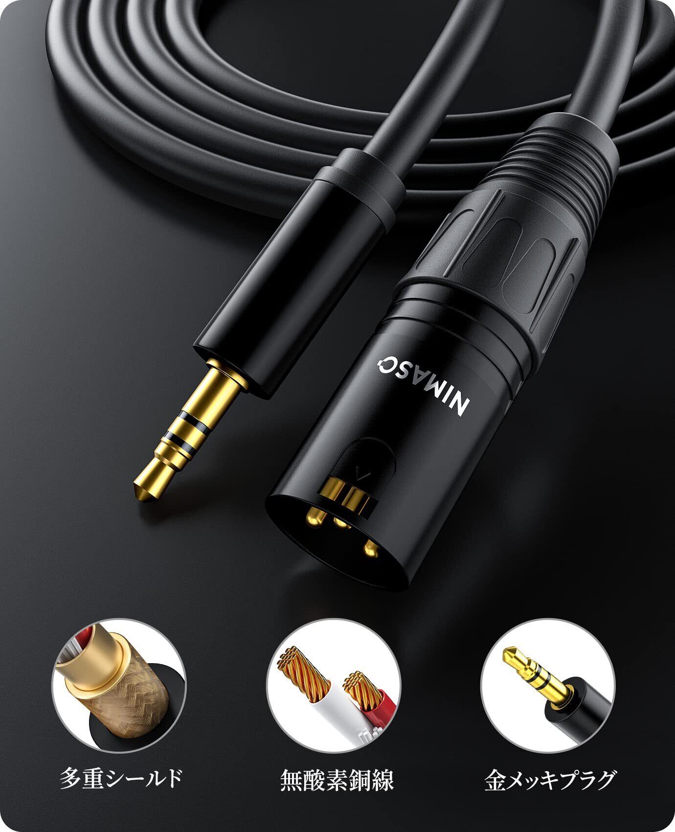 3.5mm to xlr NIMASO 3.5mm (オス) to XLR (オス) 変換ケーブル アンバランス接続 マイクケーブル xlr 3.5mm 変換 ケーブル (1m) オス-オス NCA22L632