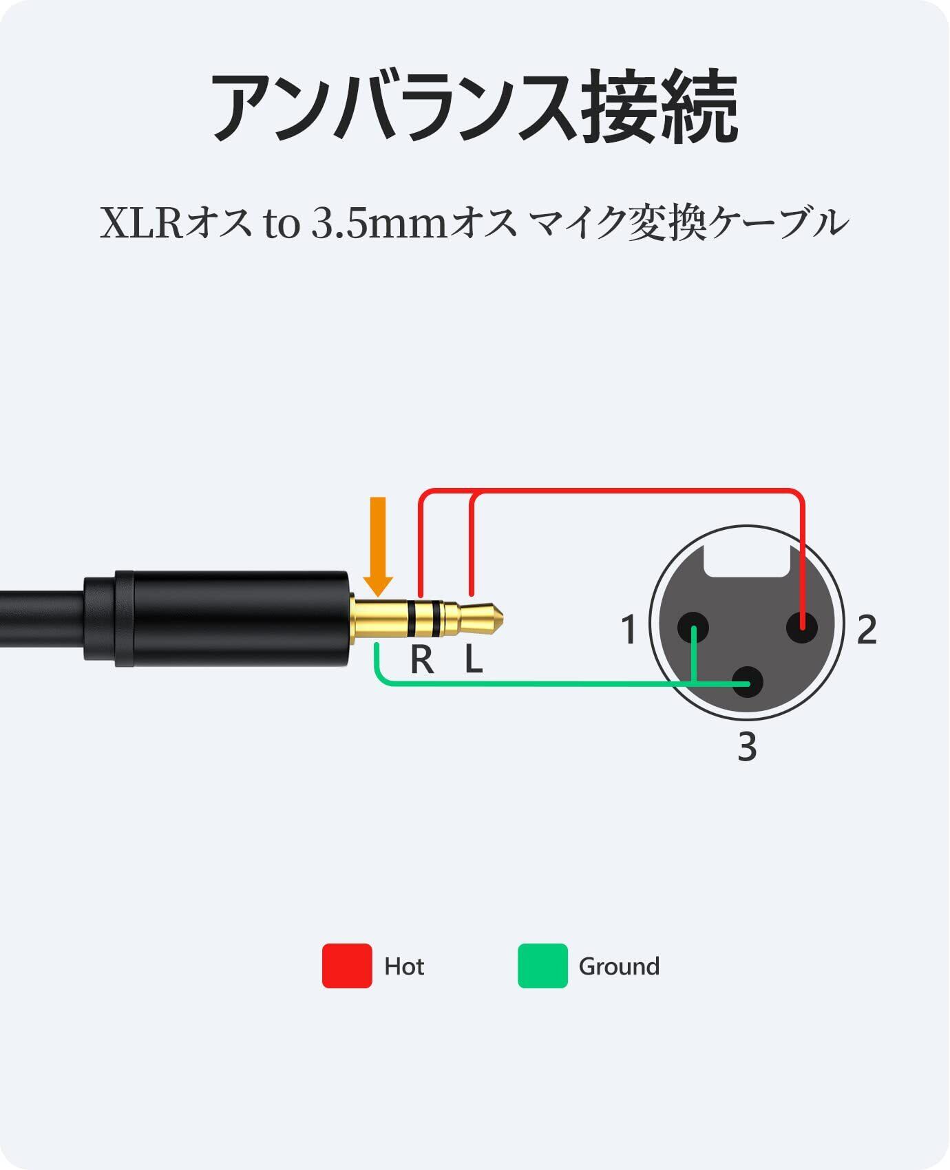 【3.5mm to XLR 変換ケーブル】本製品はアンバランス3.5mm(オス) to xlr (オス)変換ケーブルです。ご注意:本商品はアンバランスケーブルですので、バランスケーブルに非対応です。