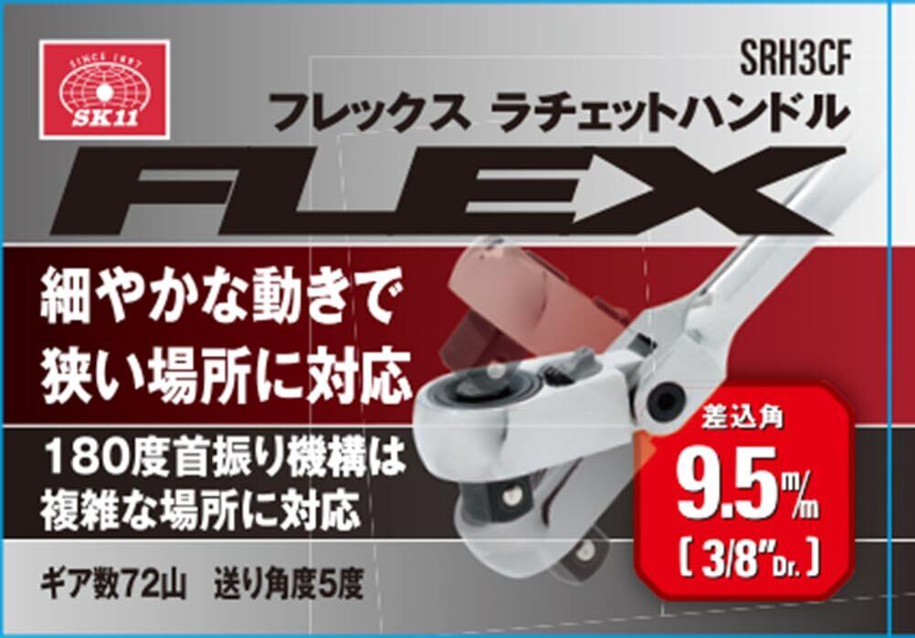 SK11(エスケー11) ラチェットハンドル フレックス 差込角 9.5mm 3/8インチ SRH3CF