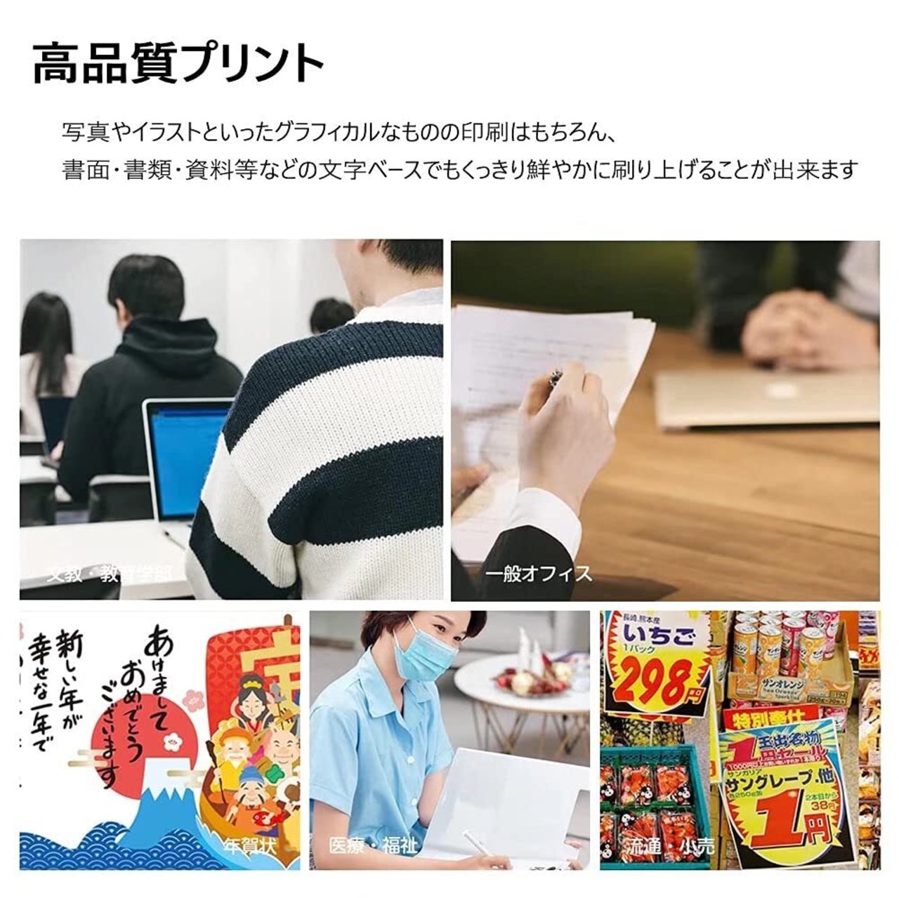 このインクは、色のにじみを防ぎ、はっきりとした印象を与えることで、プロフェッショナルな印刷結果を提供します。耐久性にも優れ、時間が経っても色褪せることなく、美しい印刷物を保ちます。