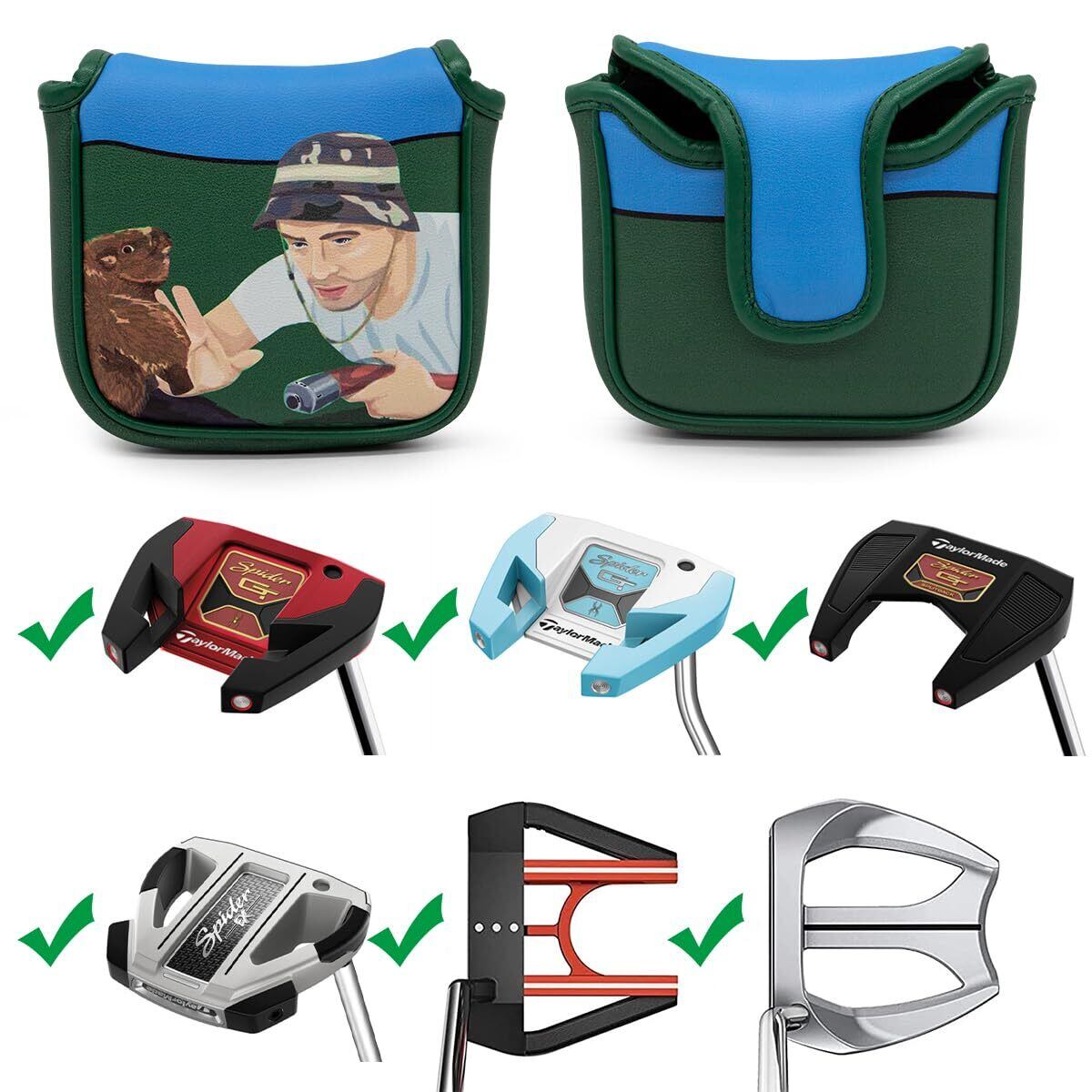 ゴルフヘッドカバー マレットパター用 Funny トパターカバー 高級PUレザー製 Aliennanaゴルフヘッドカバーマレット対応 マグネット開閉 (Gilmore)