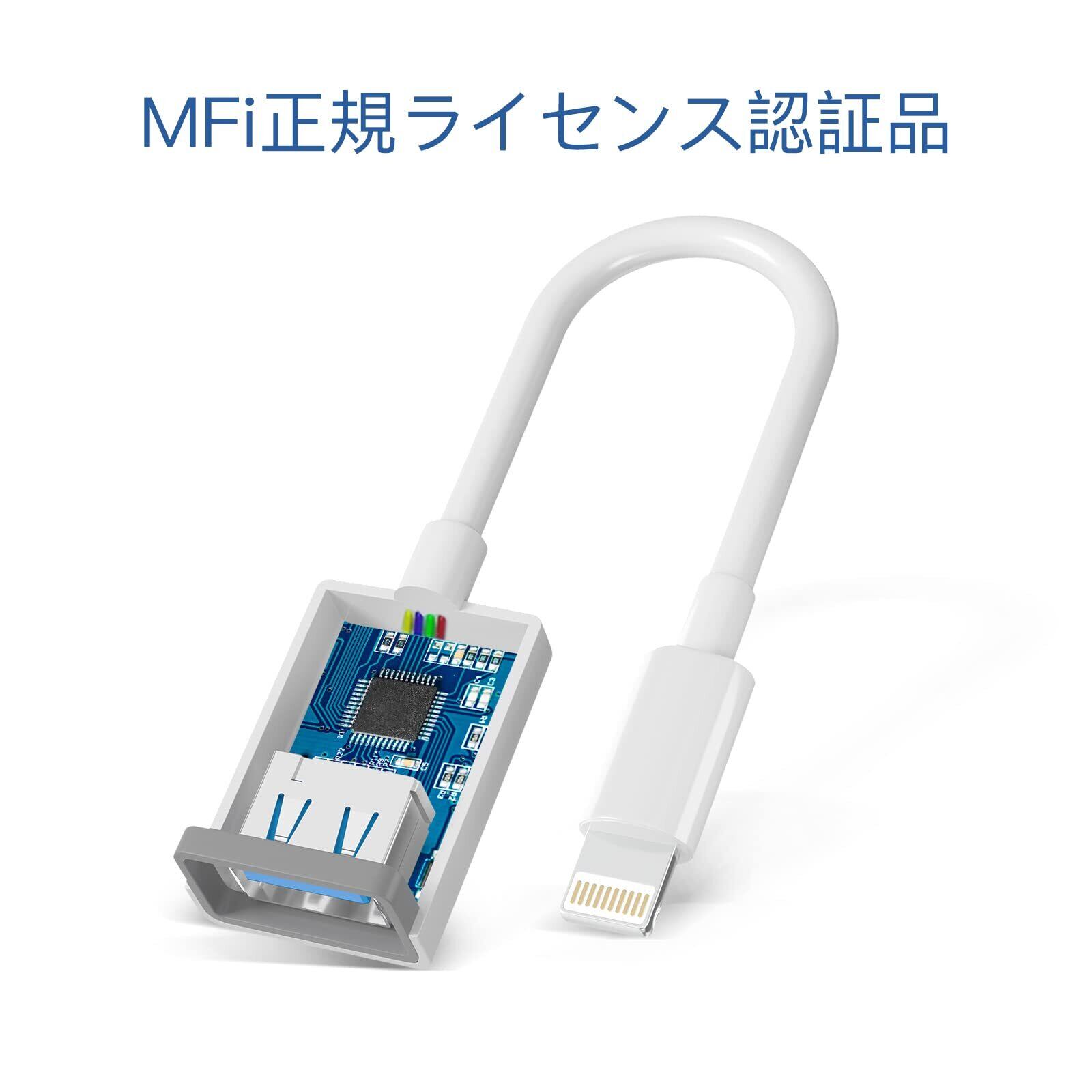 【Appleの正規ライセンス取得製品】本otg 変換アダプタはApple社が定めた性能基準を満たしたMFiライセンス商品です。Apple MFi認証を受けているlightning usbカメラアダプタで、内蔵のアップル認定チップにより、取り込みたい写真やビデオを選んで、アルバムに整理できます。写真、動画、音楽、ExcelやPDFなどのファイルデータを数秒内で高速データ転送できます。