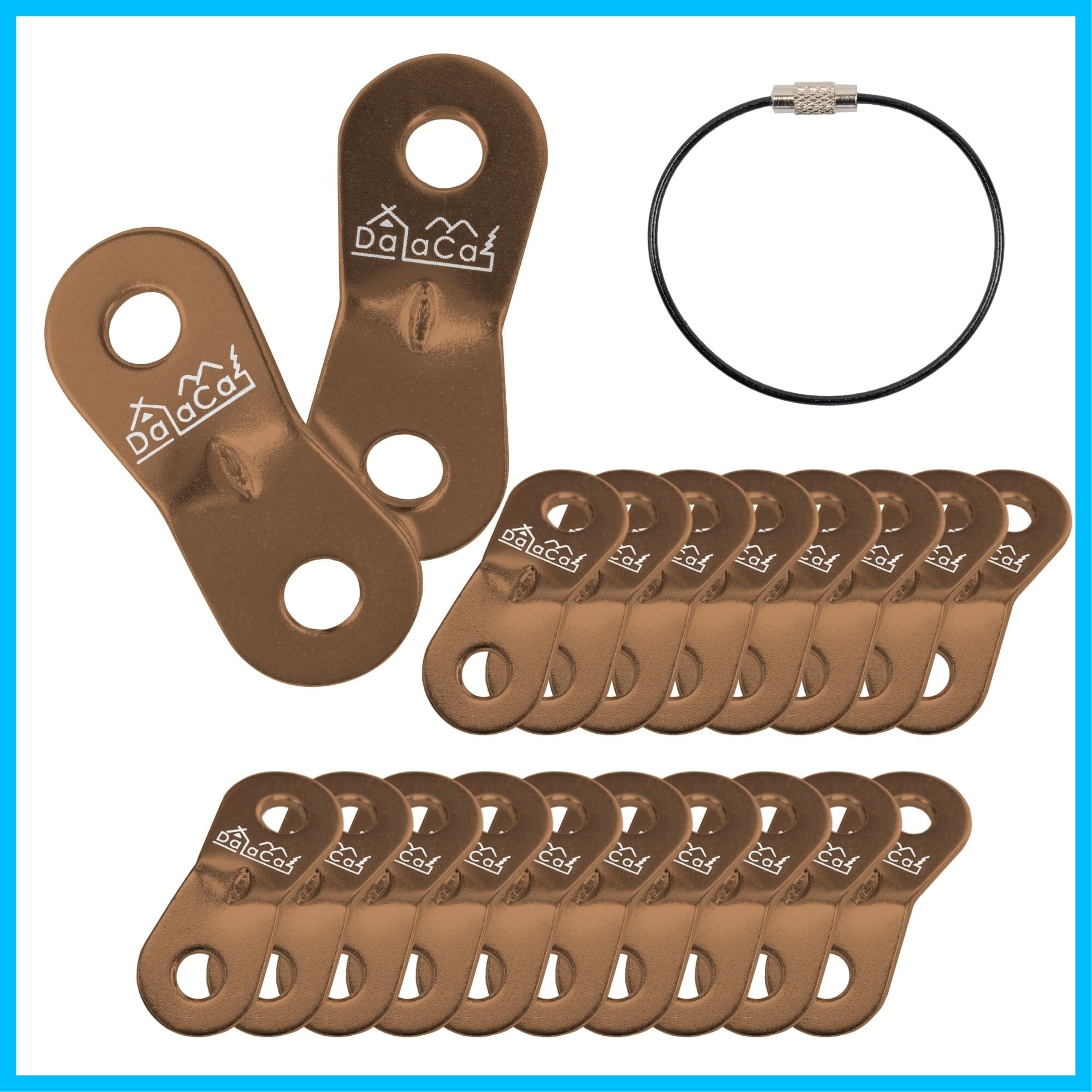 DaLaCa アルミニウム 自在金具 ロープテンショナー テント タープ ロープ 張り用 20個セット 5mmまで対応 (ブラウン)